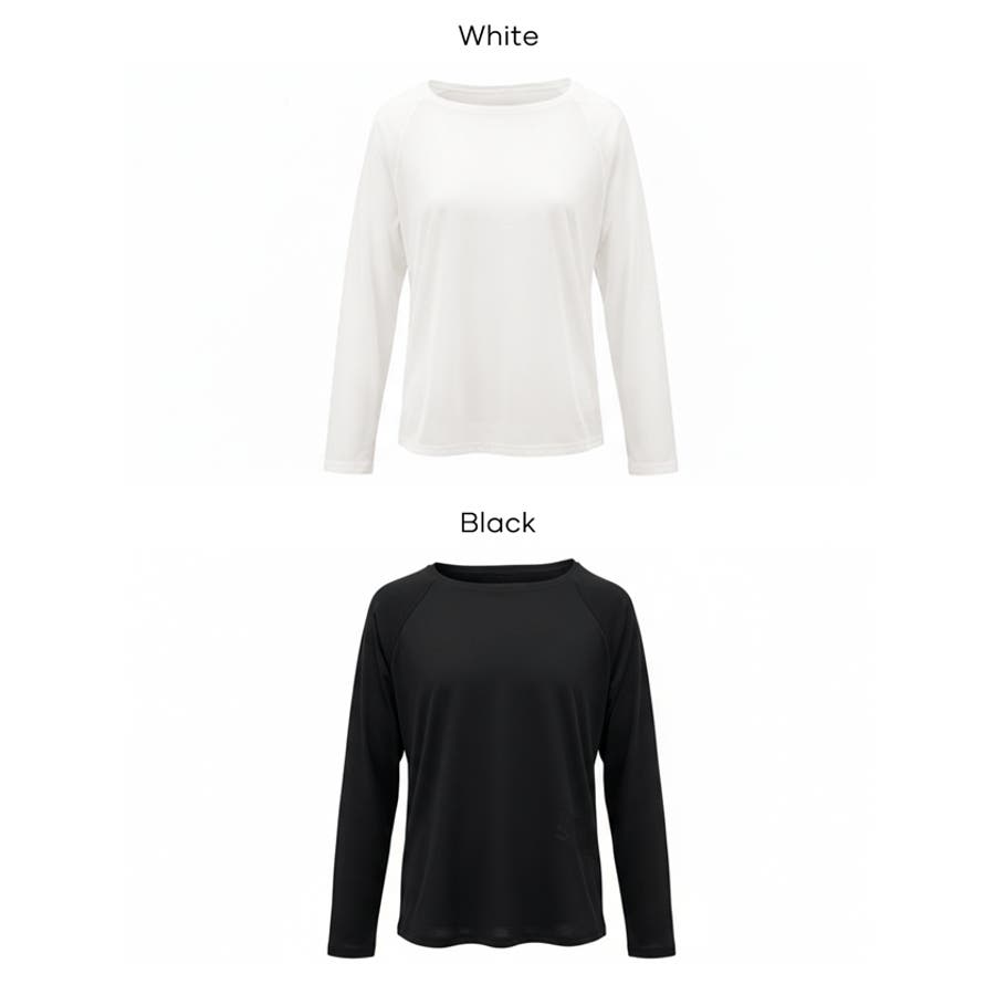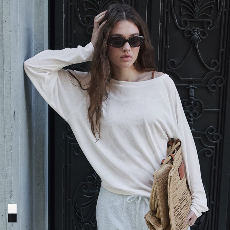 肩まわりをやわらかく見せるラグランスリーブデザイン。