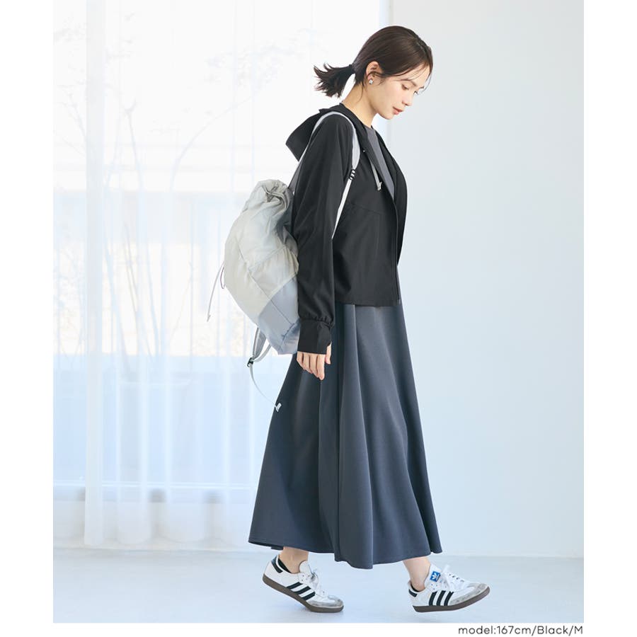 フード付きで首元までしっかりカバーし、すっきりバランスの良いシルエット。