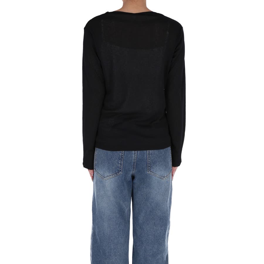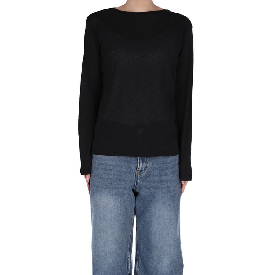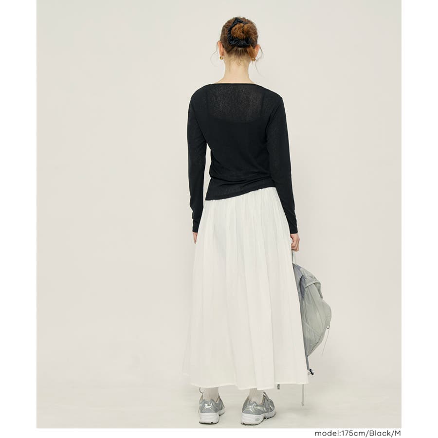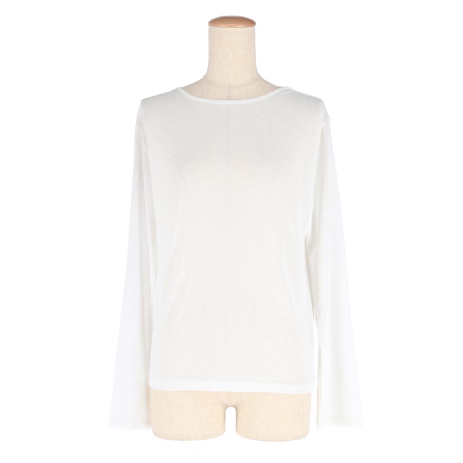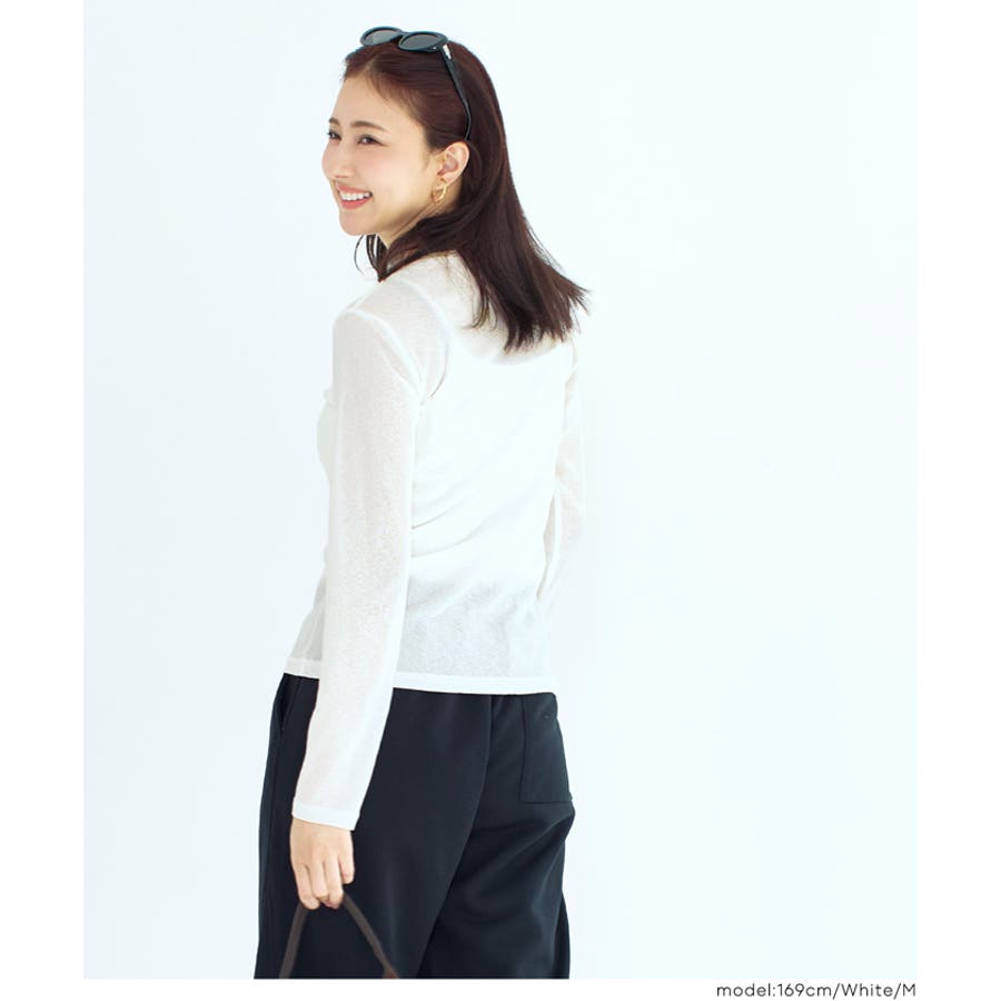 シンプルなデザインながら、ほどよい透け感が女性らしさを引き立てる長袖トップス。