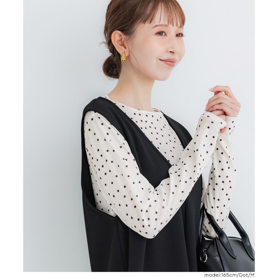 おしゃれ 可愛い きれいめ 秋 秋服 冬 冬服 おとな 大人 女性ファッション 韓国 カジュアル プチプラ 10代 20代 30代 40代 50代 オフィス ホーム シンプル オフィスカジュアル COCA coca コカ 春 レイヤード トップス ドット シアー dot ジョーゼット クルーネック カジュアル カットソー 透け感 レイヤード シンプル カジュアル 長袖 軽量 26ss