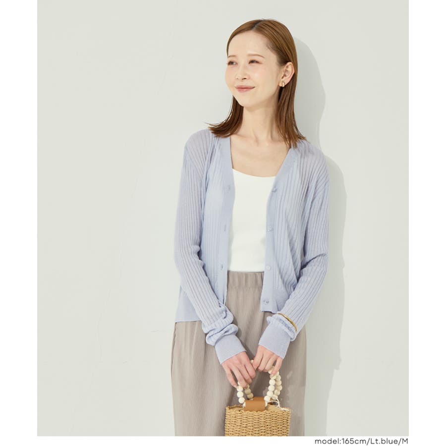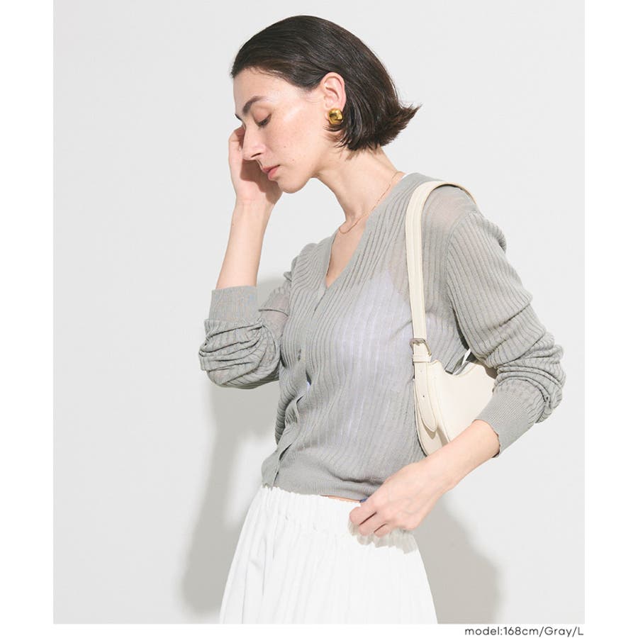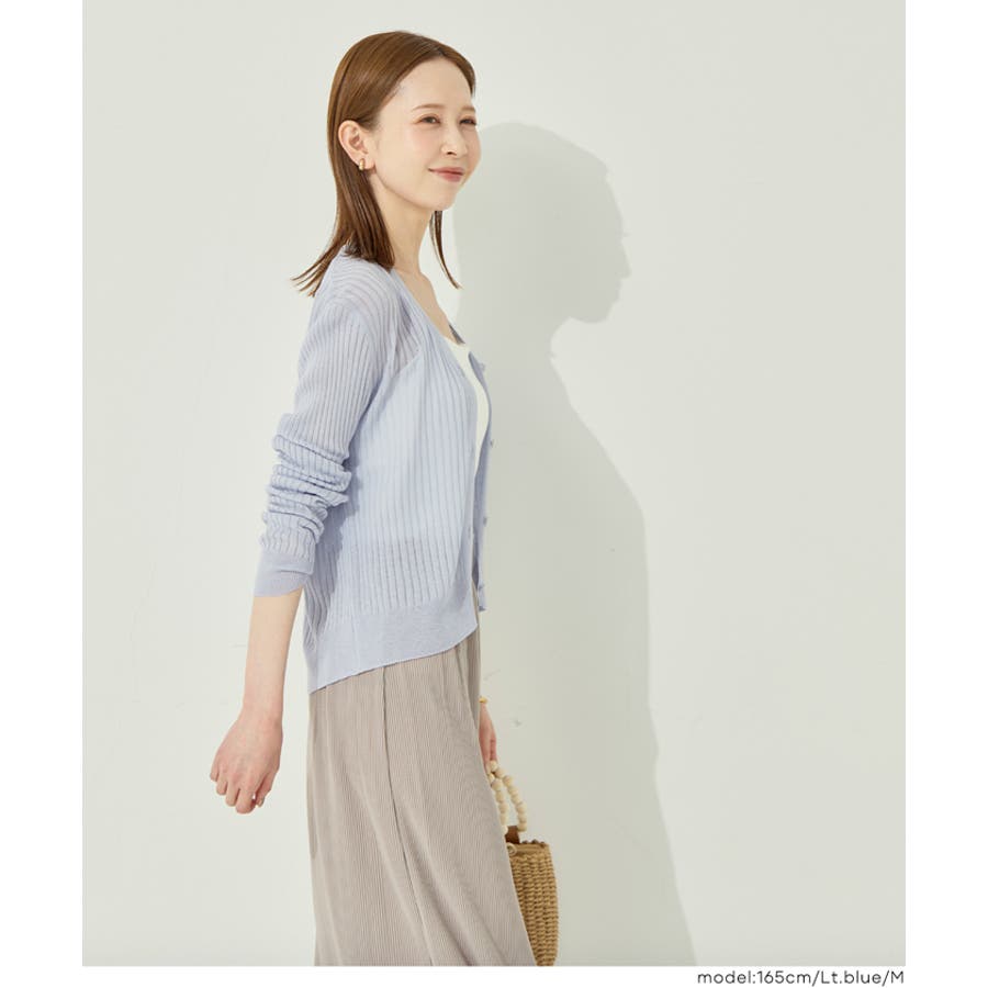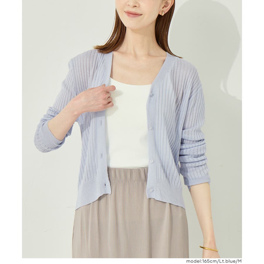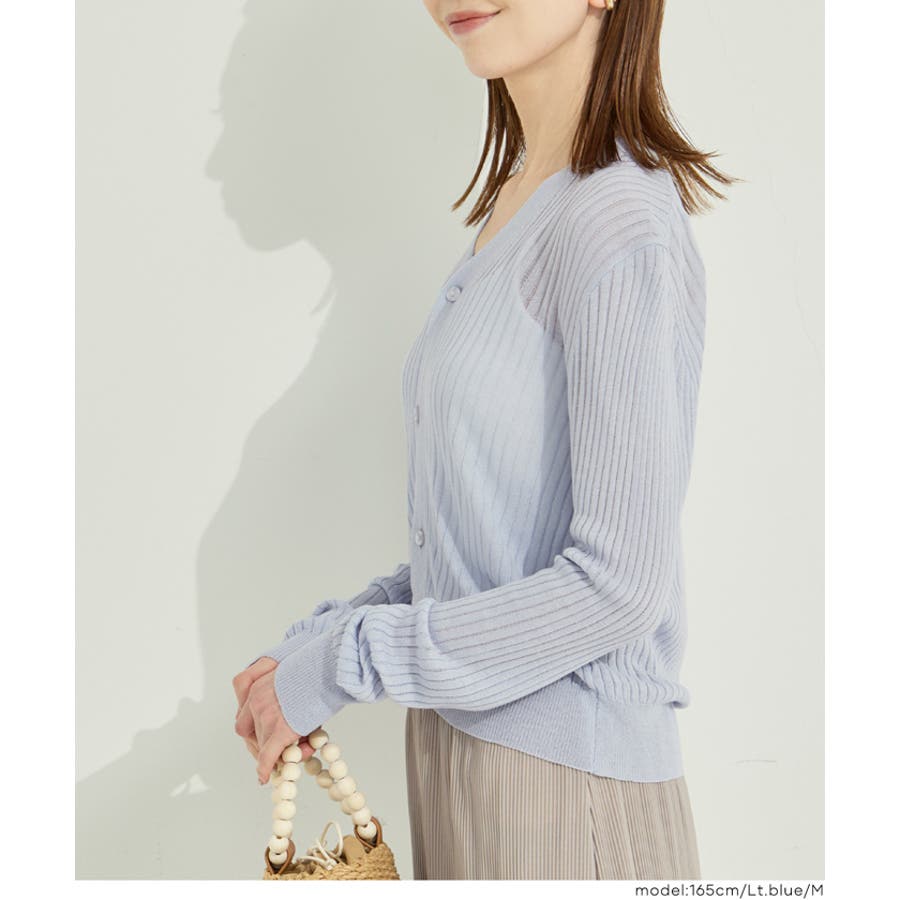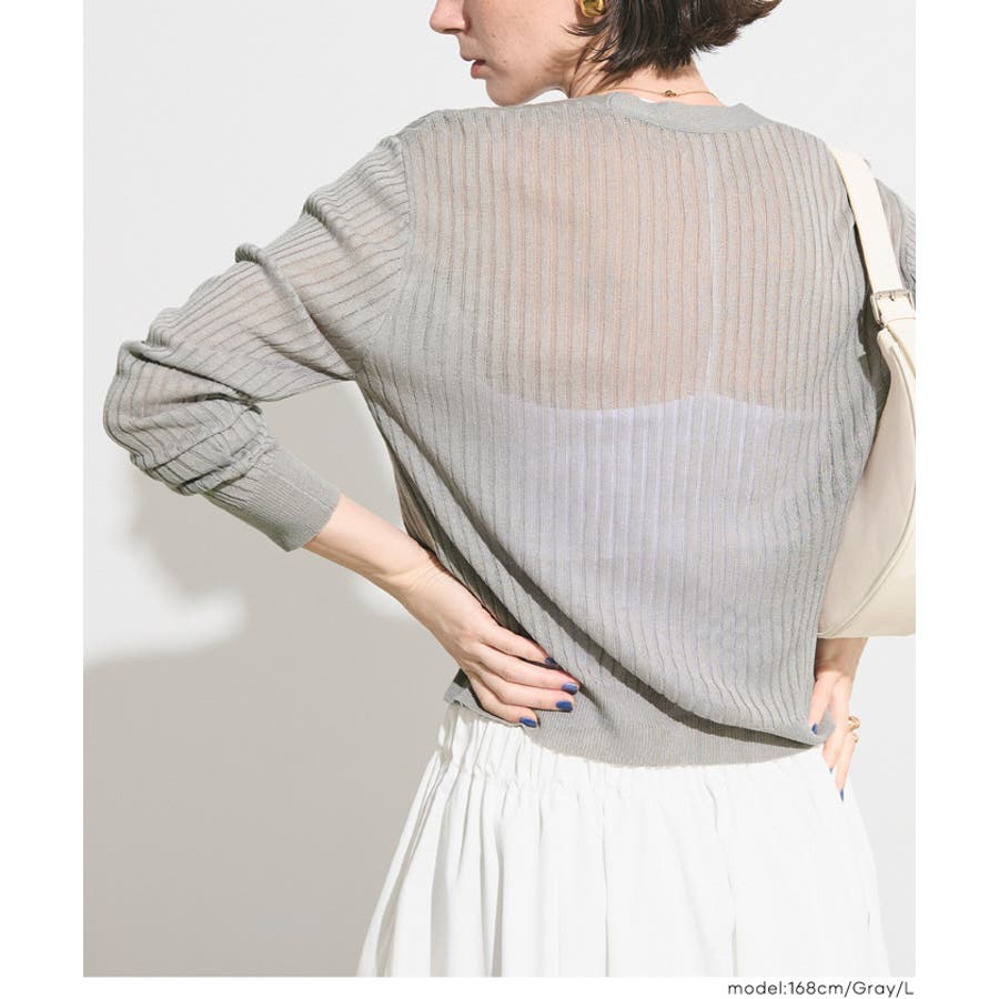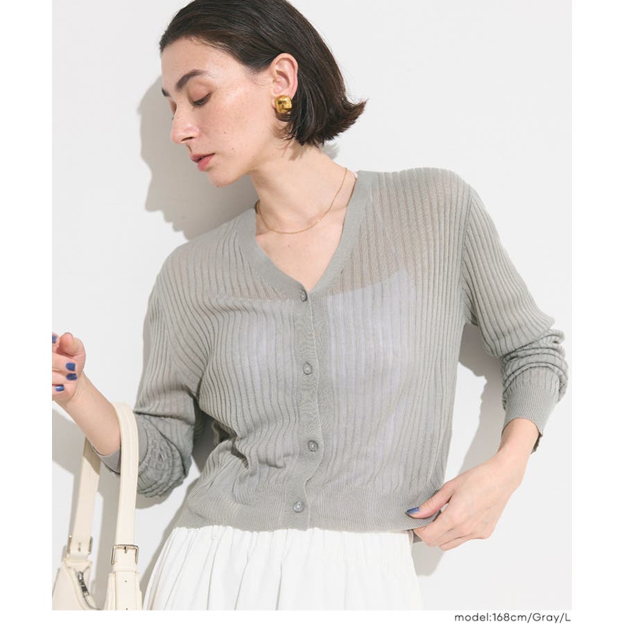 縦リブデザインがすっきりとした印象を与えるシアーニットカーディガン。
