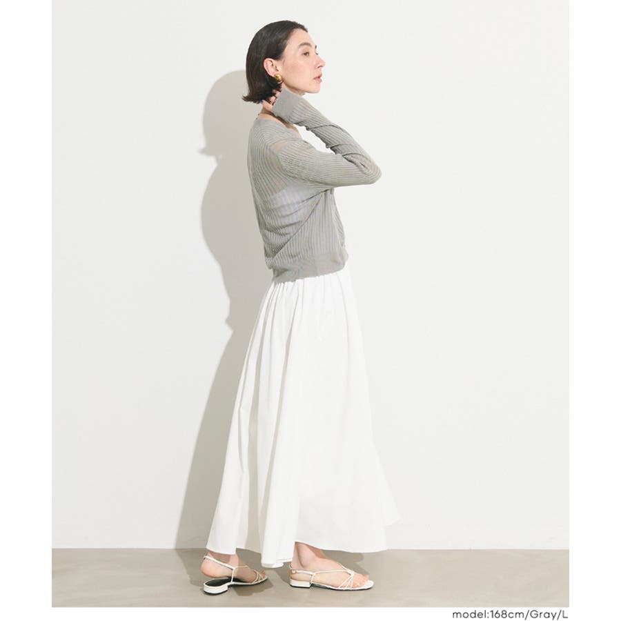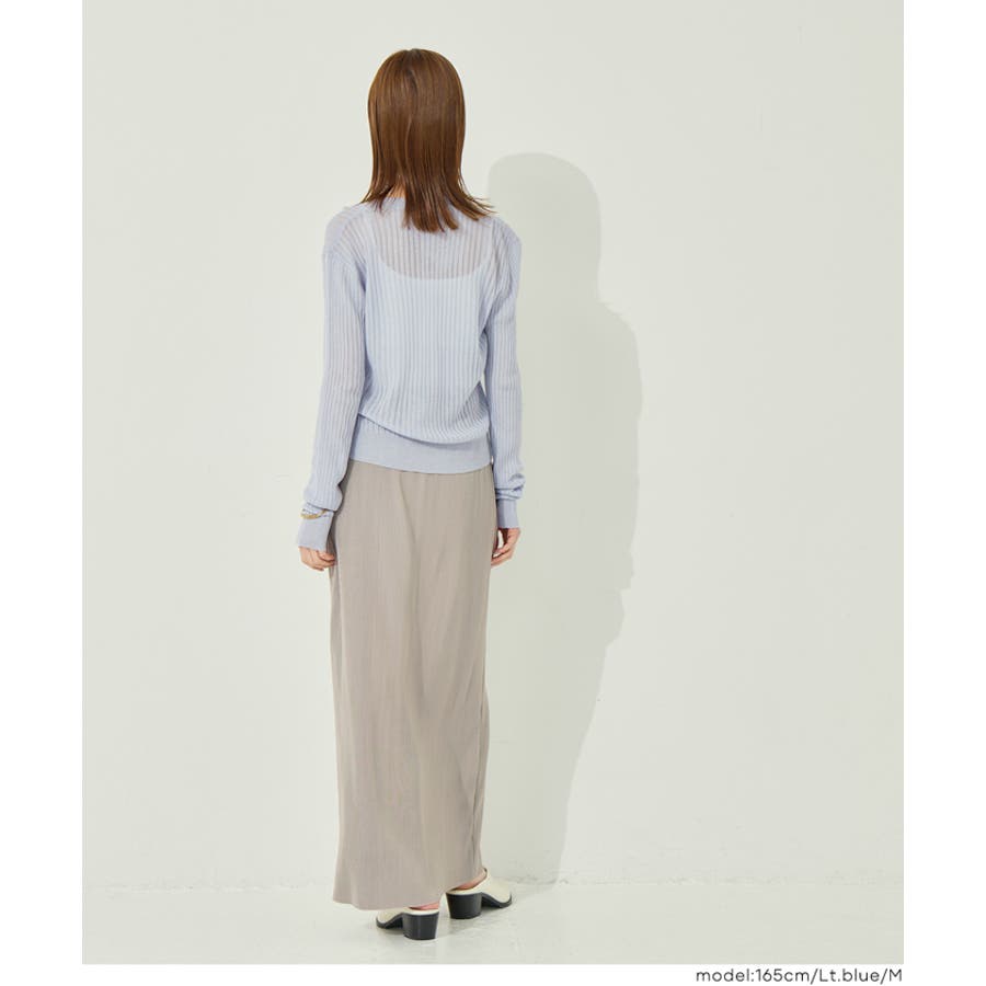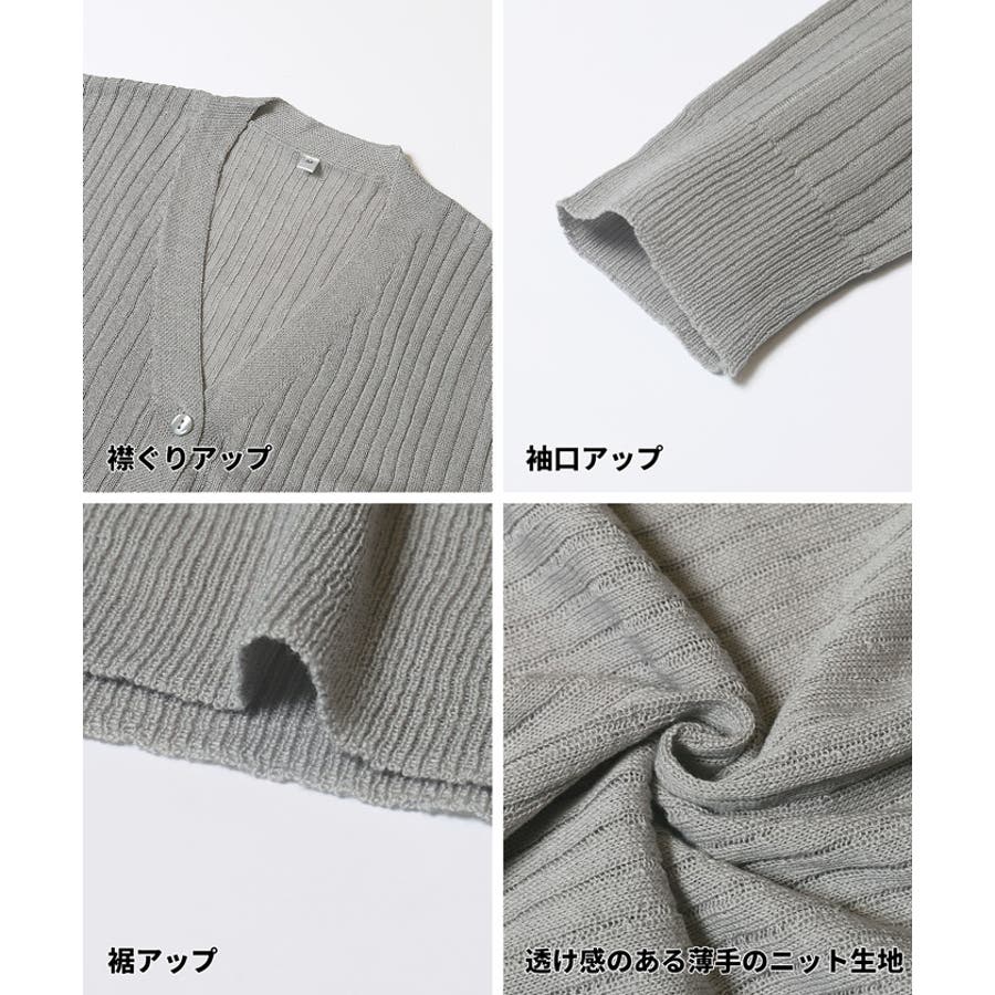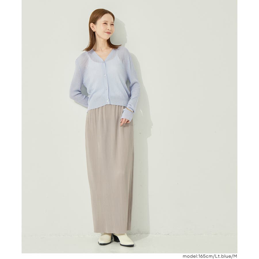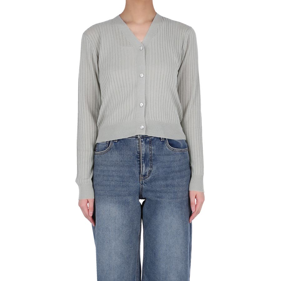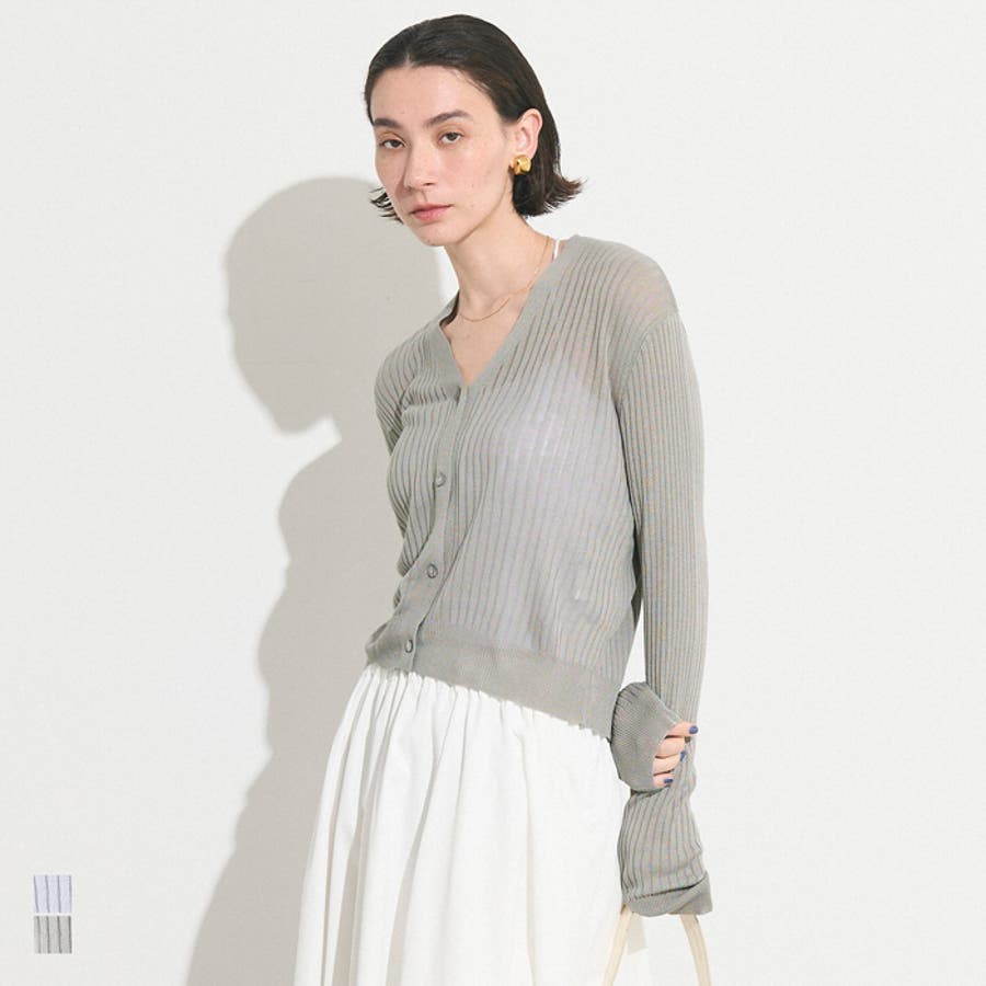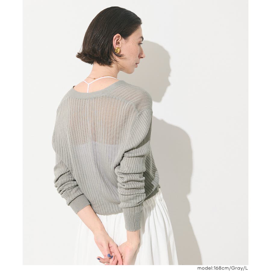 縦リブデザインがすっきりとした印象を与えるシアーニットカーディガン。