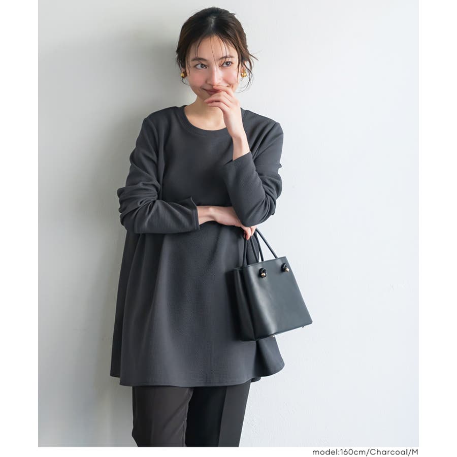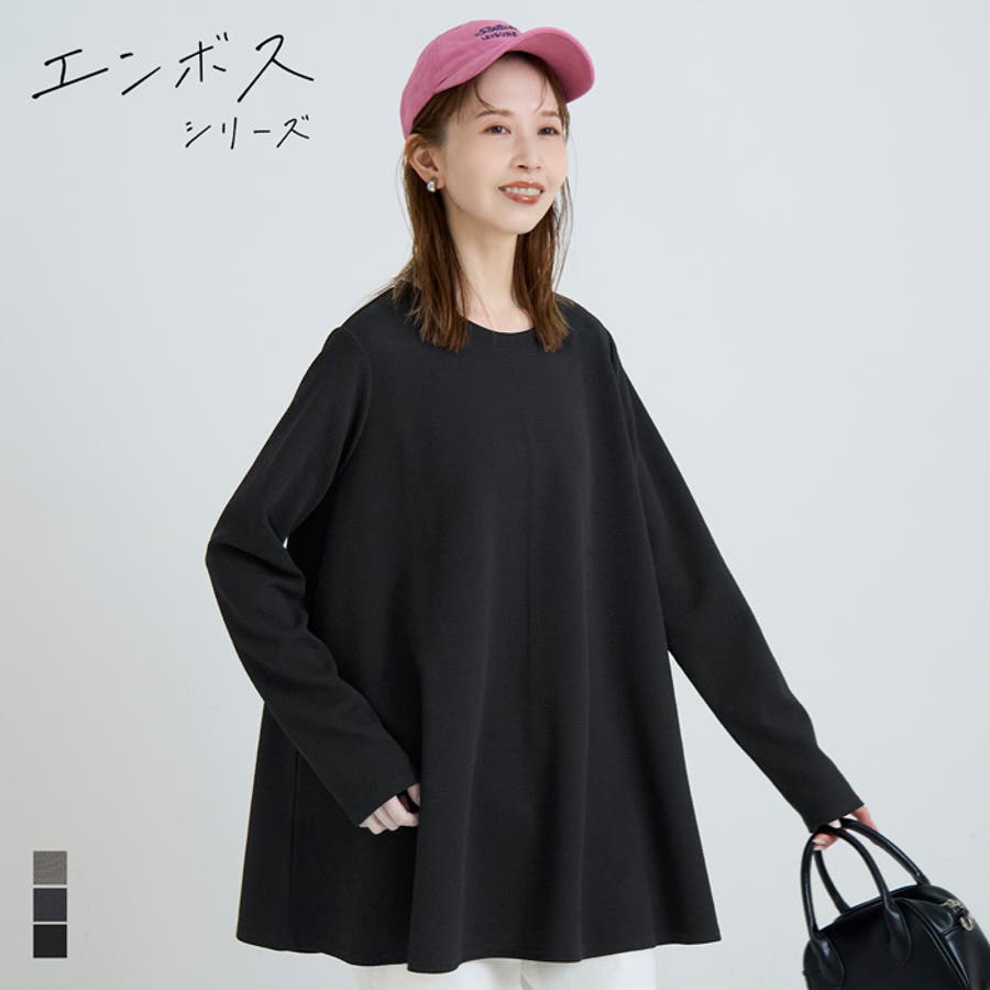 着痩せ効果!エンボスフレアチュニック