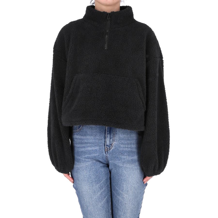 暖かみのある両面ボアフリースを使用したハーフジップトップス。