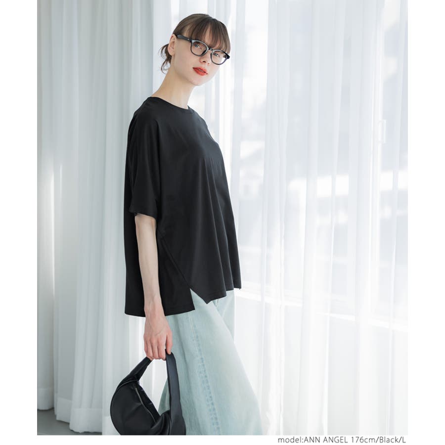 Tシャツ レディース カットソー ドルマン サイドスリット 前振り 無地 クルーネック ミディアム丈 トップス サイドスリット シンプル カジュアル 半袖Tシャツ プルオーバー コカ COCA coca COCA coca