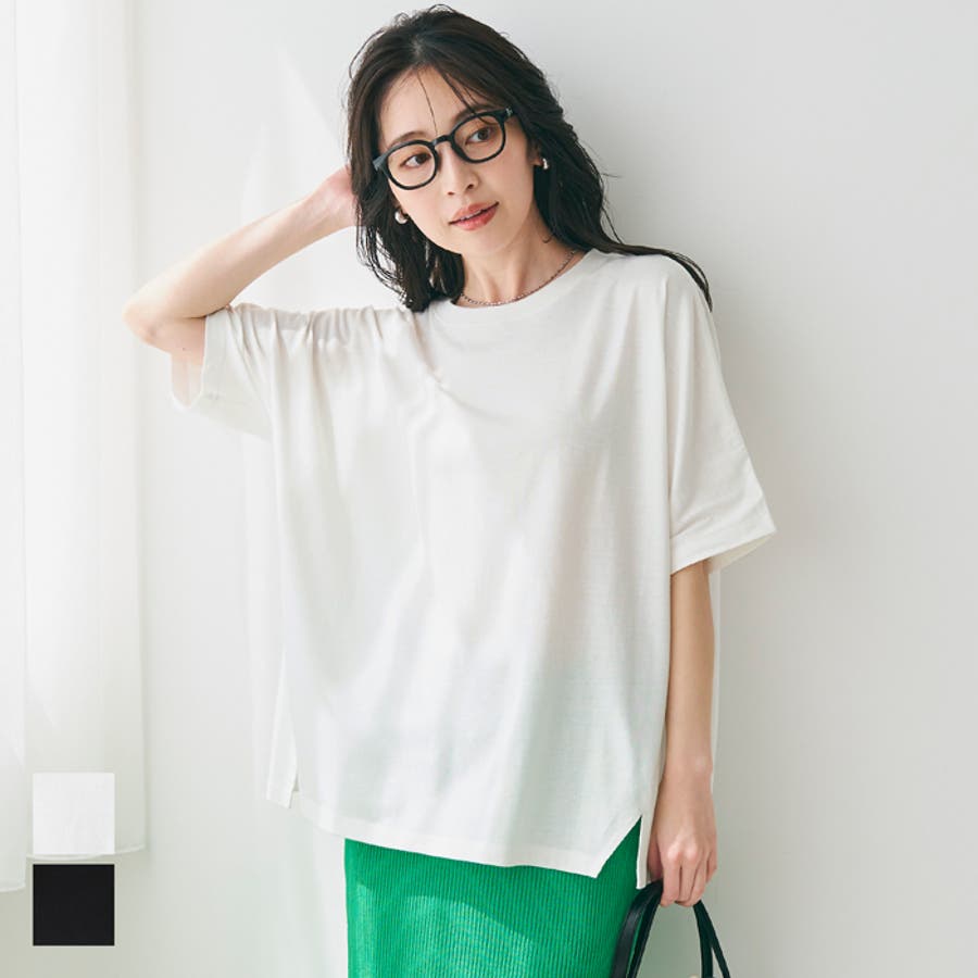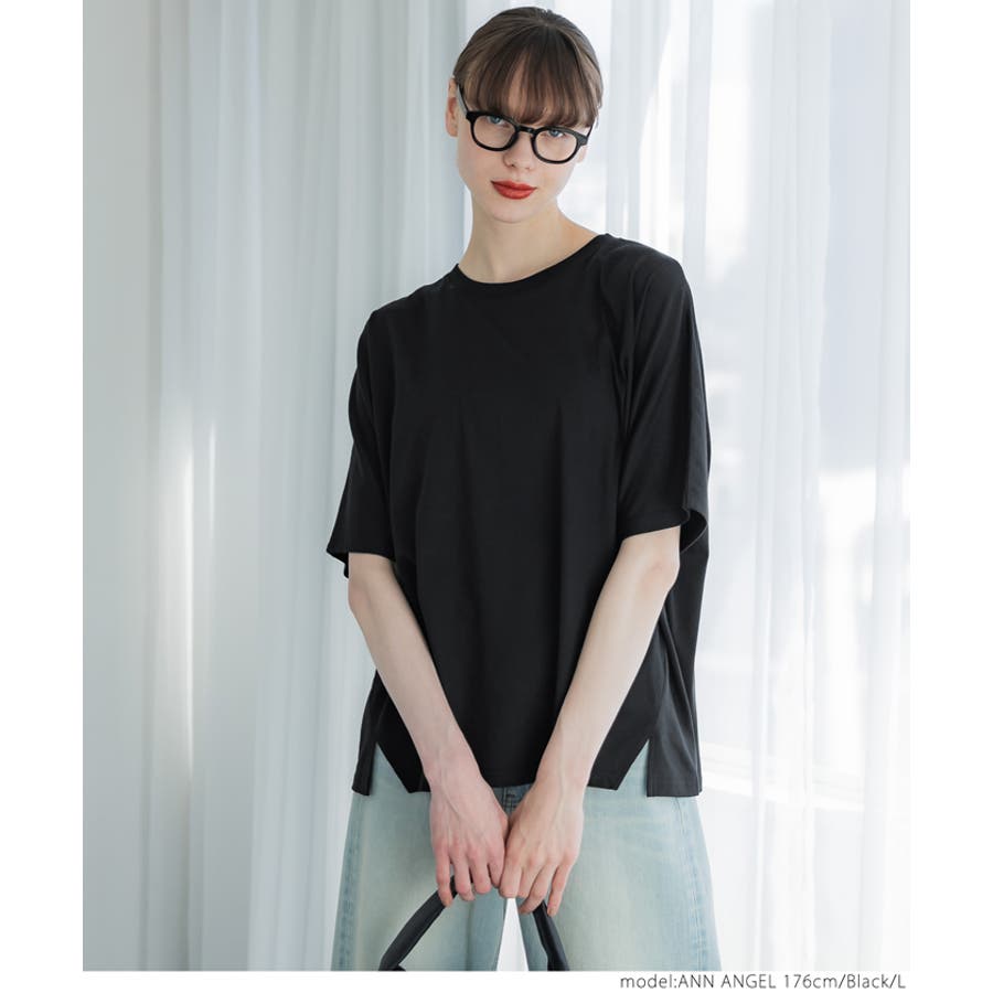 ドルマンスリーブのゆったりしたシルエットのTシャツ。