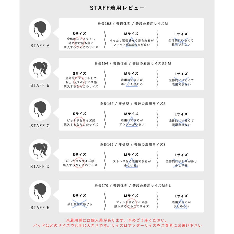 ※生地や素材の性質により2cm前後(ニット製品に関しては4cm程度)サイズ誤差が出る場合がございます。