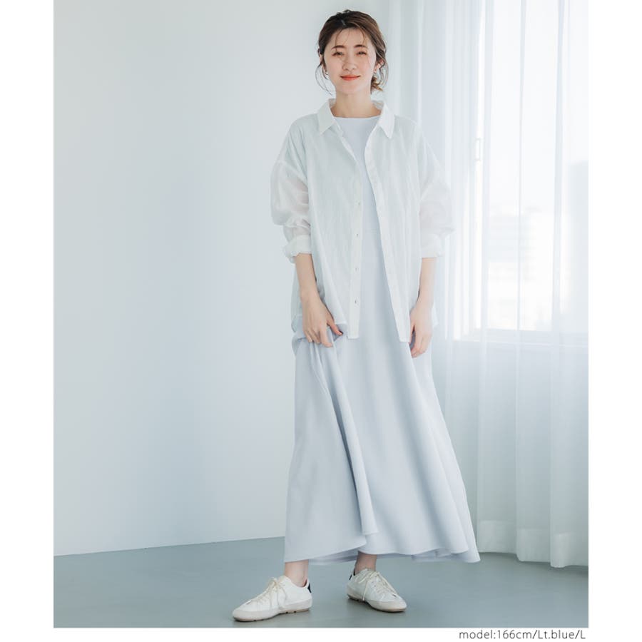 さらっと一枚で決まり、体のラインを拾いにくいAラインシルエットがポイント。