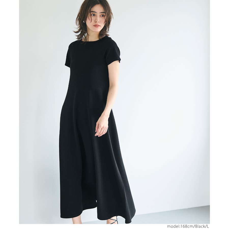 【[Black]】エンボス切り替えワンピース レディース