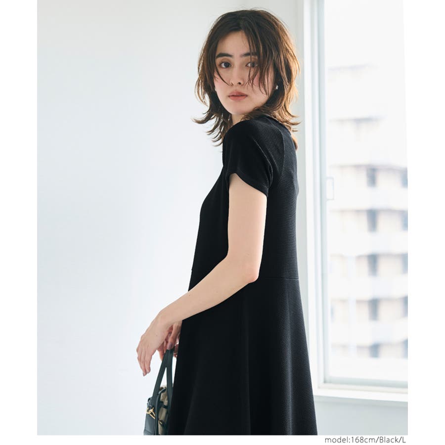 切り替えデザインで着ぶくれしないエンボスワンピース