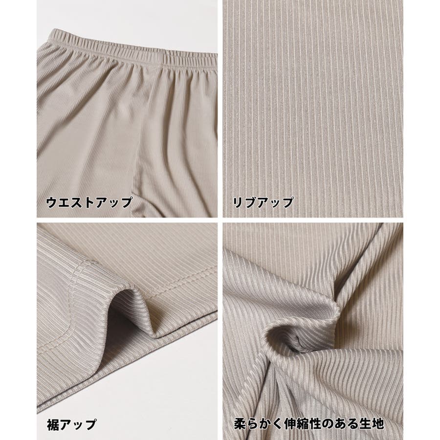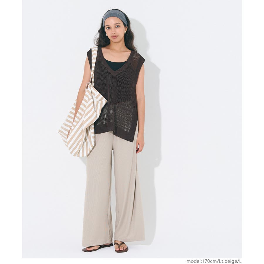 細めのリブが縦のラインを強調し、リラックス感がありながらもすっきり見えが叶います。