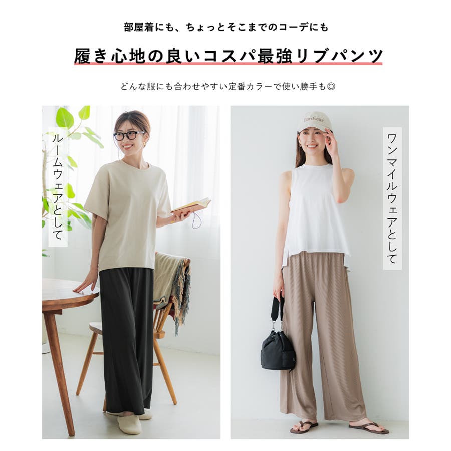 【3サイズ展開/シワになりにくい】リブリラックスパンツ