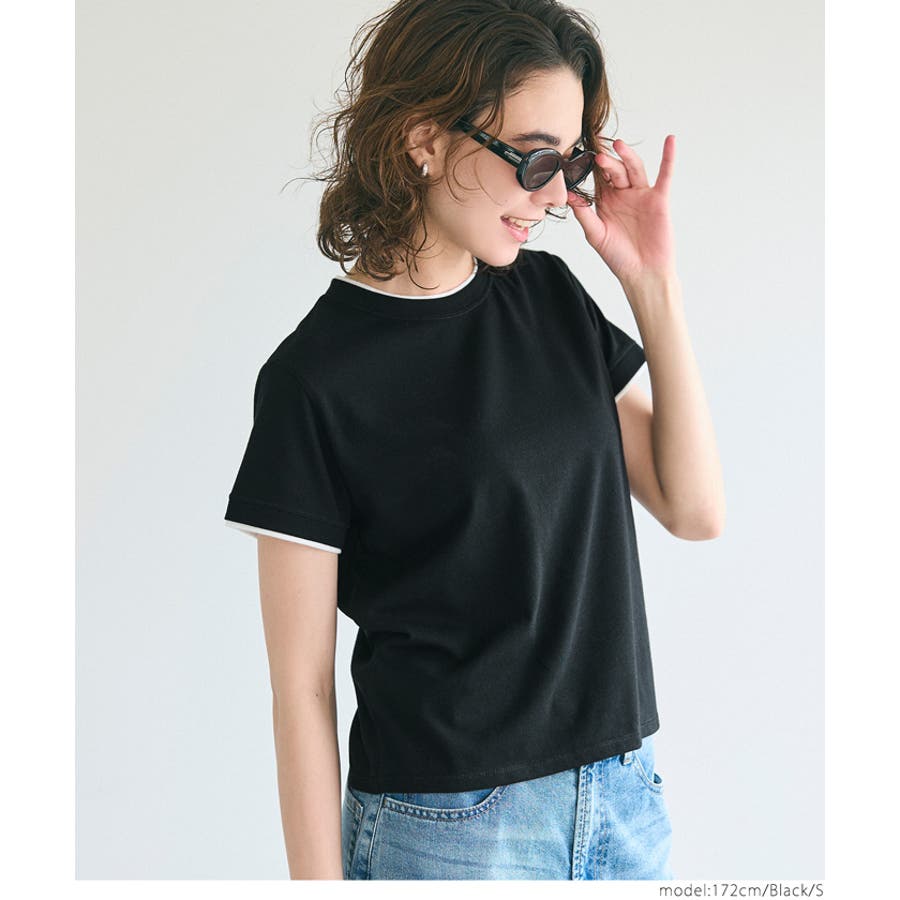 こなれ感を演出するレイヤード風デザインが魅力のコンパクト半袖トップス