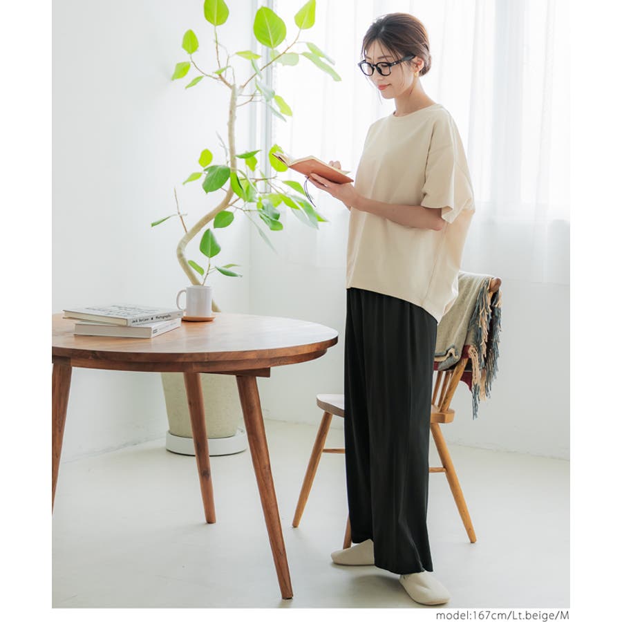 裾に入ったさりげないタックが自然な立体感を生み、シンプルながらもこなれた印象に仕上げてくれます。