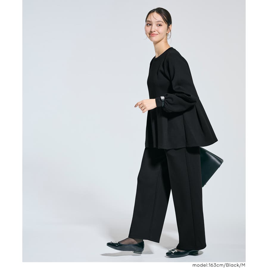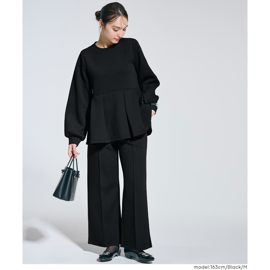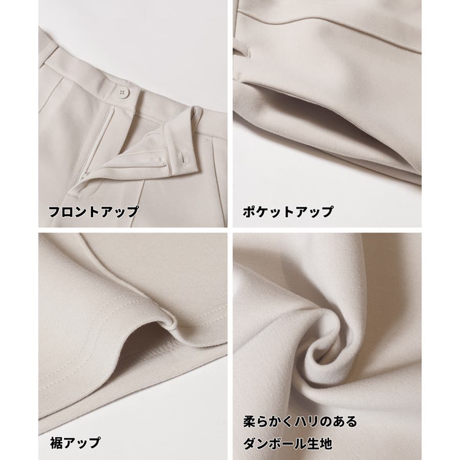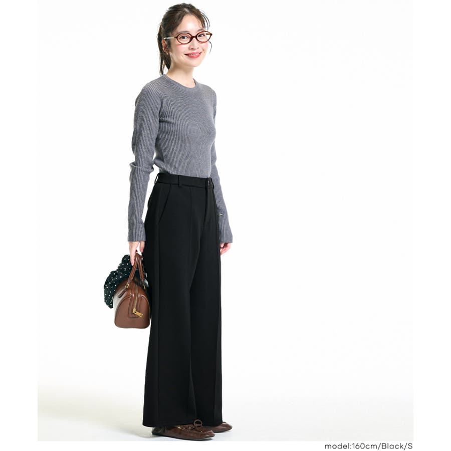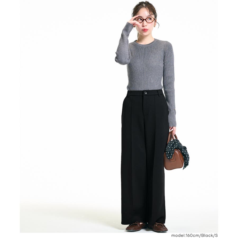 センターピンタックが脚のラインをすっきりと見せ、きれいめな印象を演出。