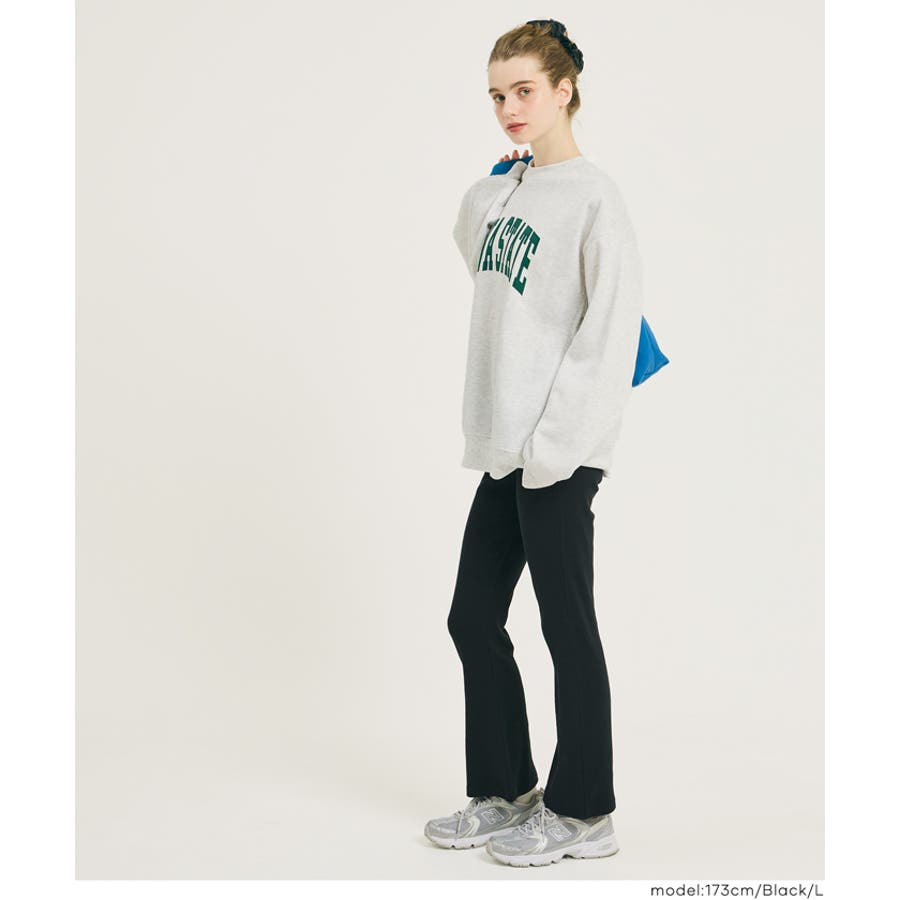 オーバーサイズのスウェットやニットと合わせるだけで、簡単に今っぽいスタイルに。