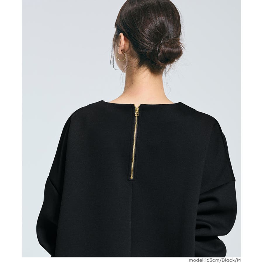 バックジップがさりげないアクセントになり、シンプルながら洗練された印象を与えます。