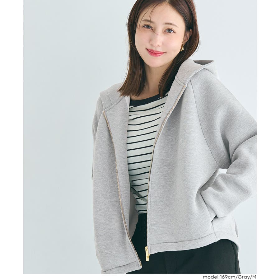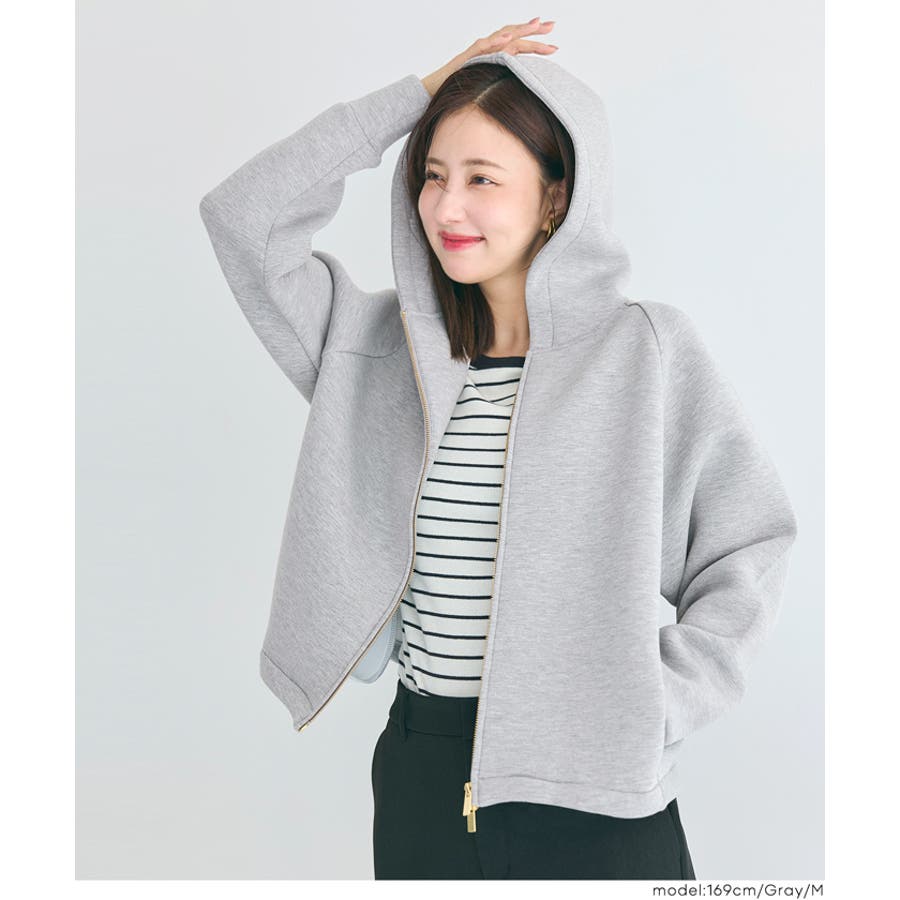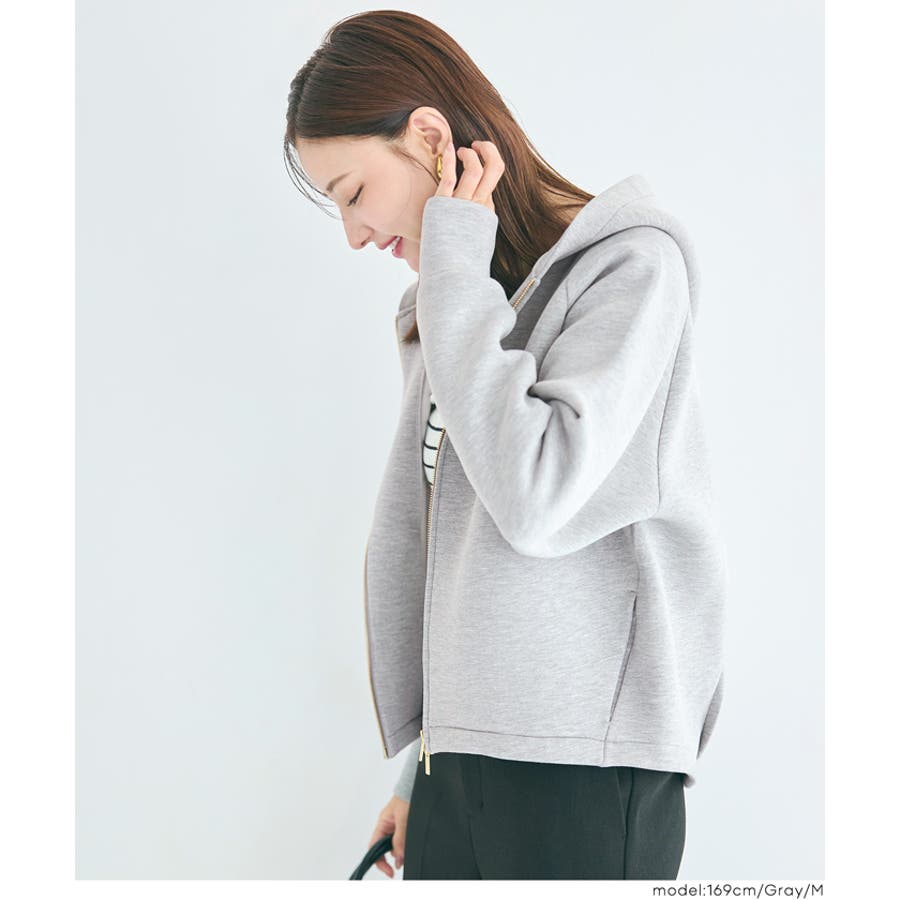 シンプルながらも程よく立体感のあるスウェット素材で仕立てたジップアップパーカー。
