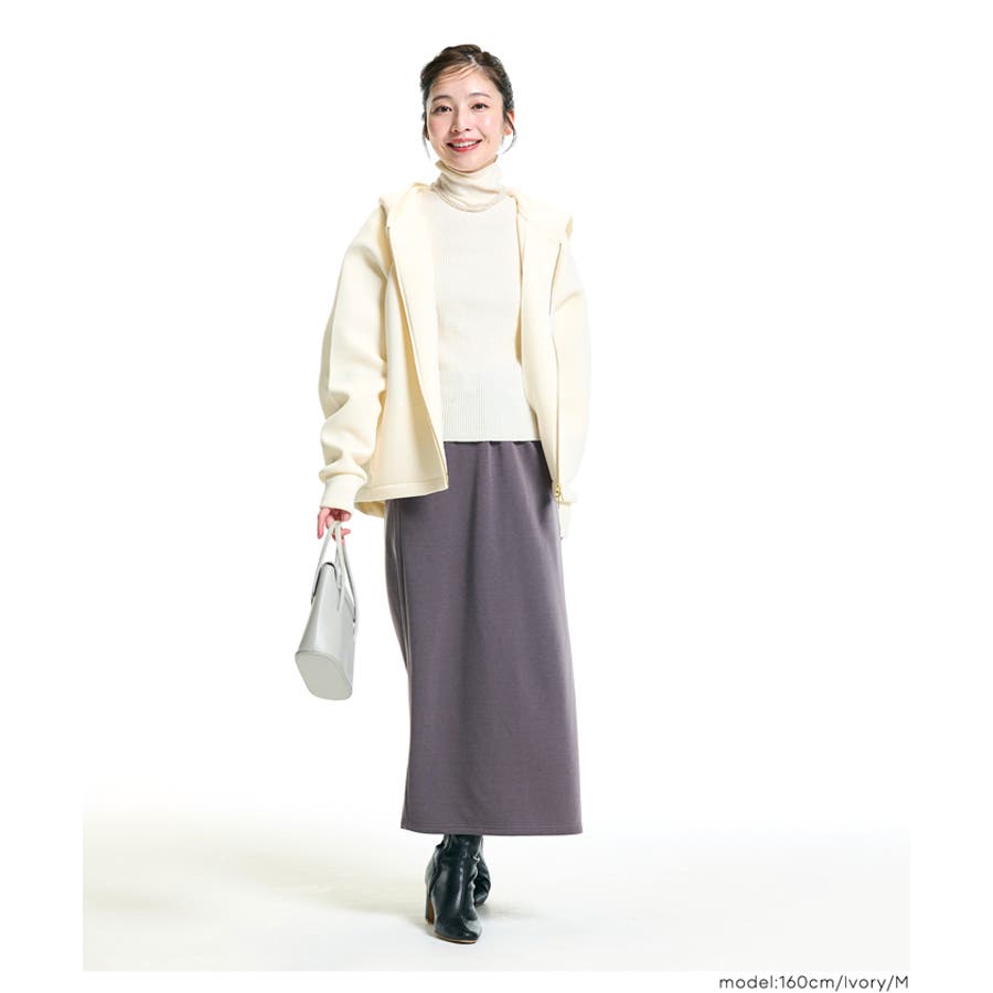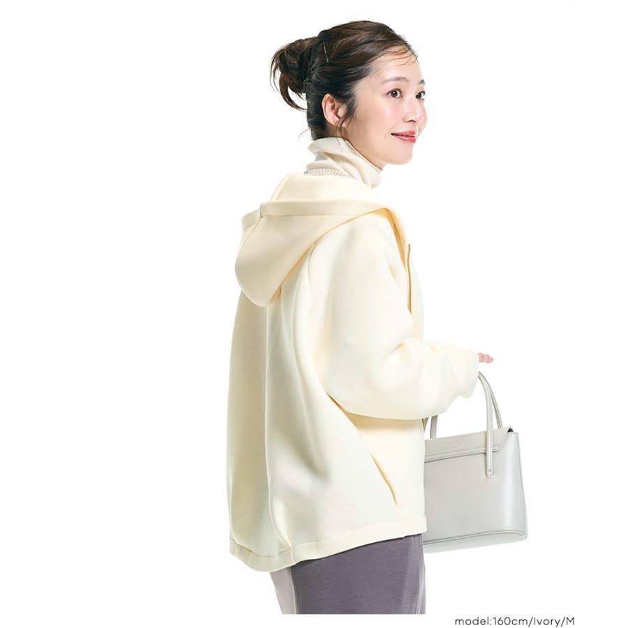 フード付きでカジュアルながらも、無地デザインで大人っぽく着こなせる一枚です。