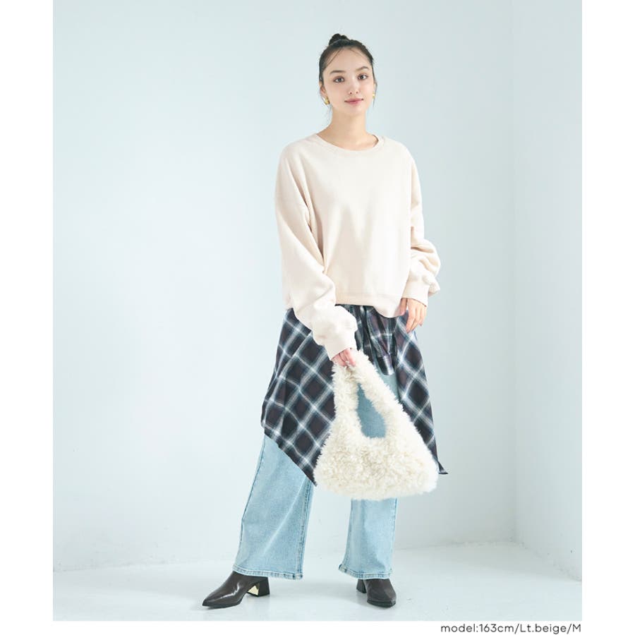 身幅広めで丈短めです。インナー重ねたりハイウエストのボトムスと合わせやすそうです。