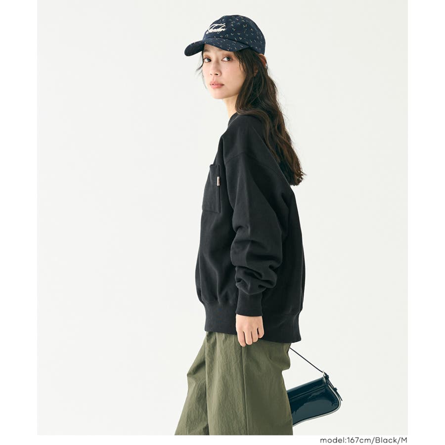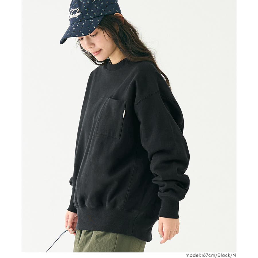 無駄のないシンプルなデザインに、胸ポケットをアクセントとして加えたプルオーバースウェット。