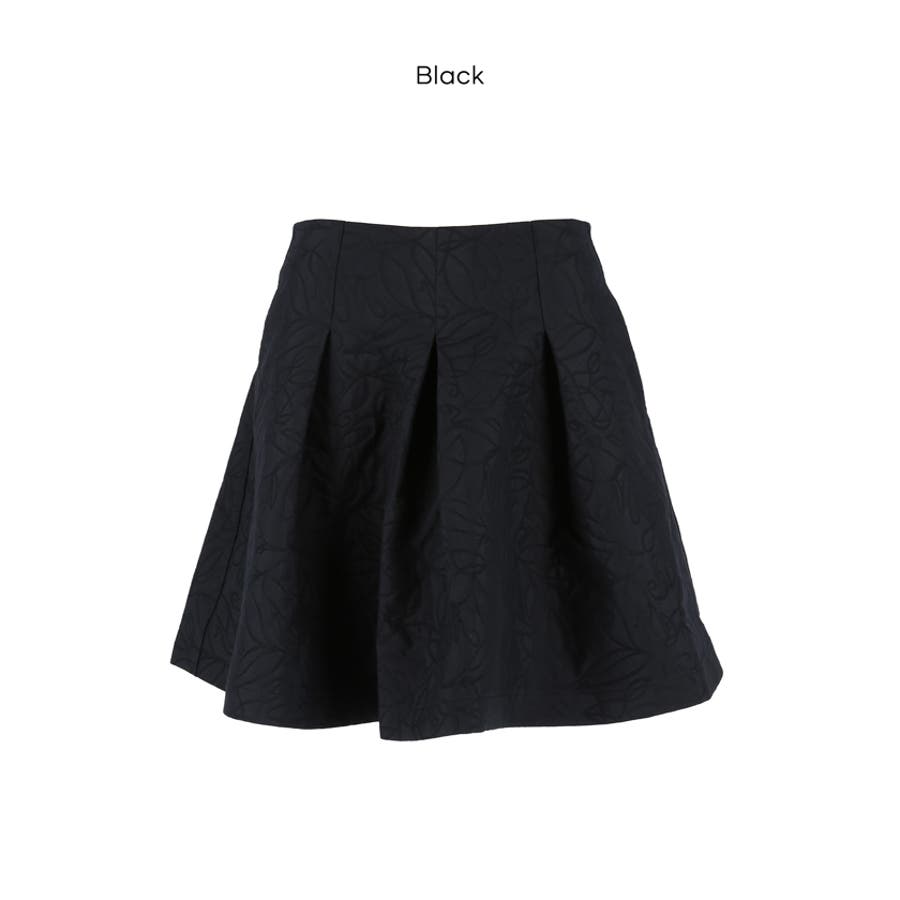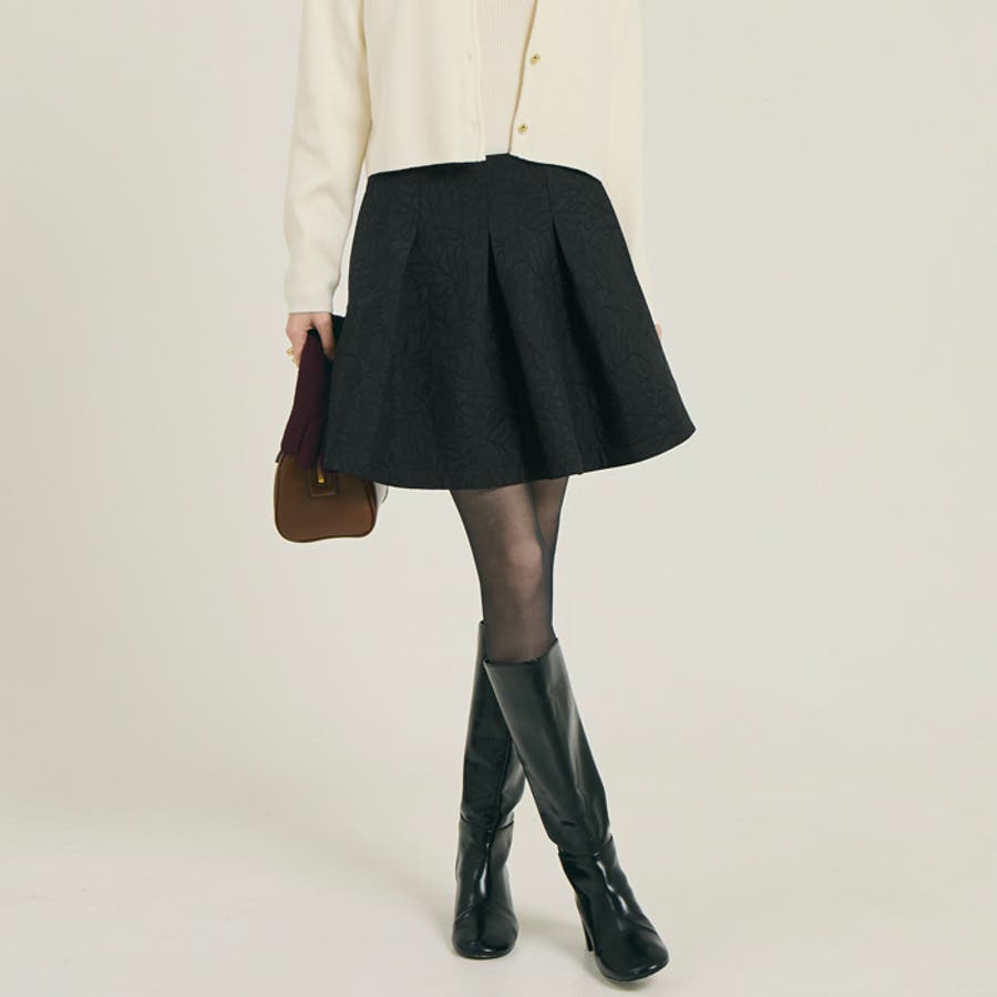 タックデザインが立体的なシルエットをつくり、上品な広がりを演出するミニスカート。
