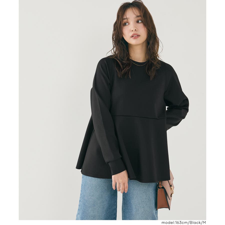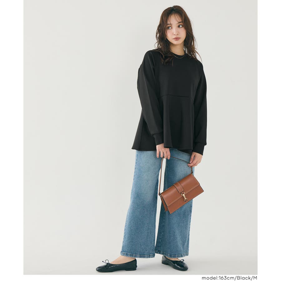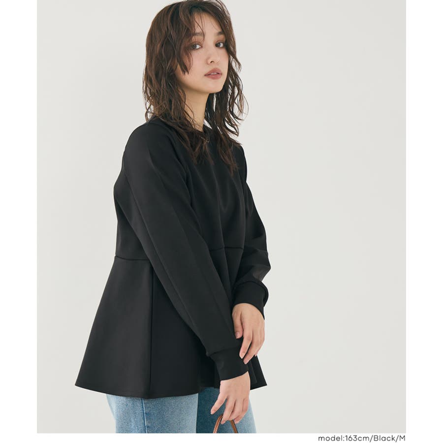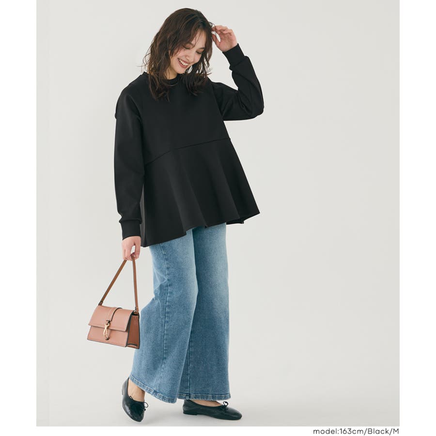 ウエストからふんわり広がるペプラムラインが、自然にスタイルアップを演出。