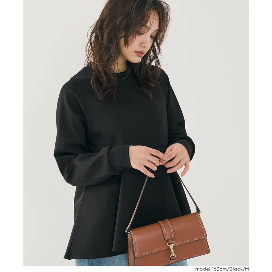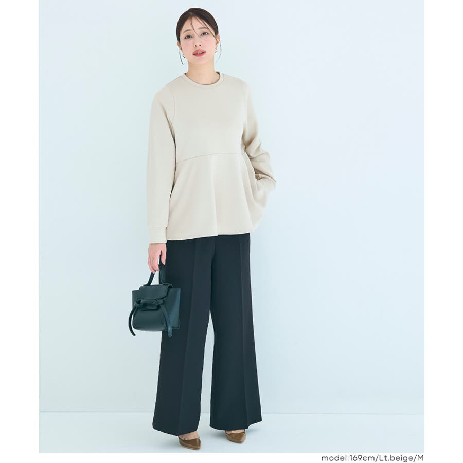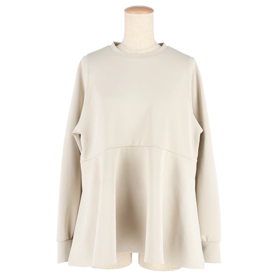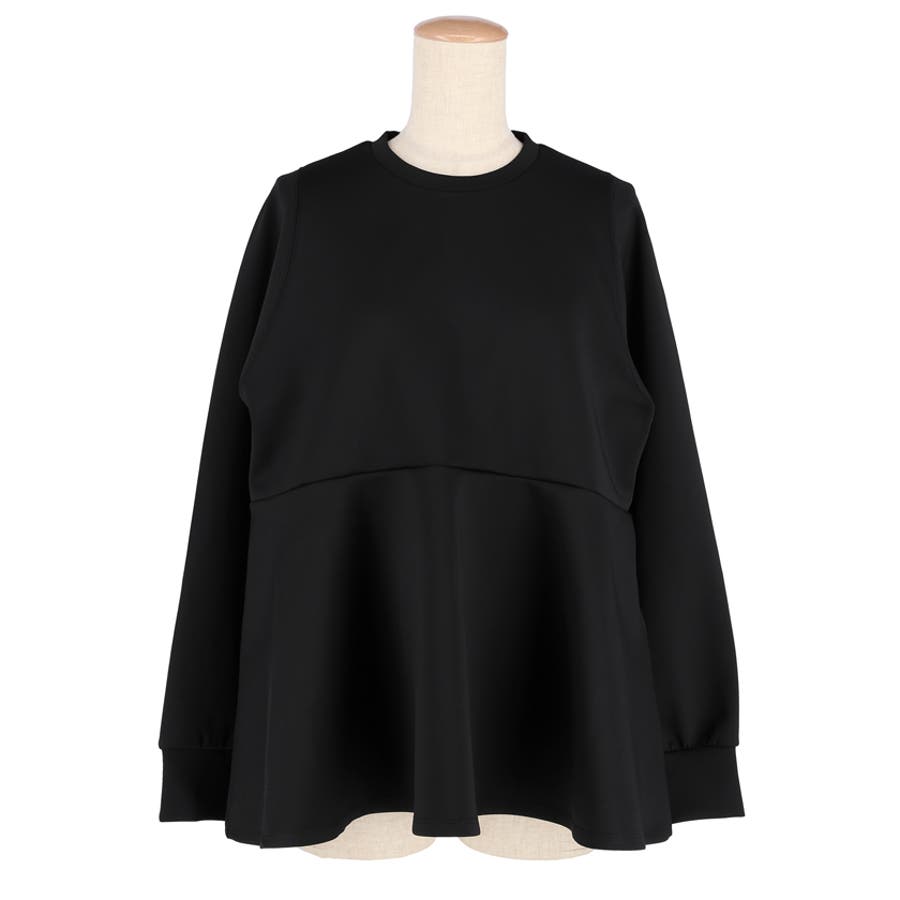 ウエストからふんわり広がるペプラムラインが、自然にスタイルアップを演出。