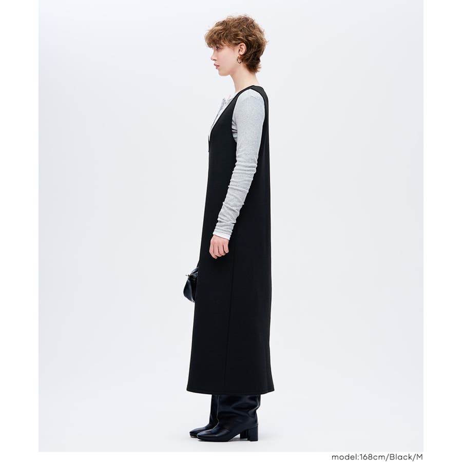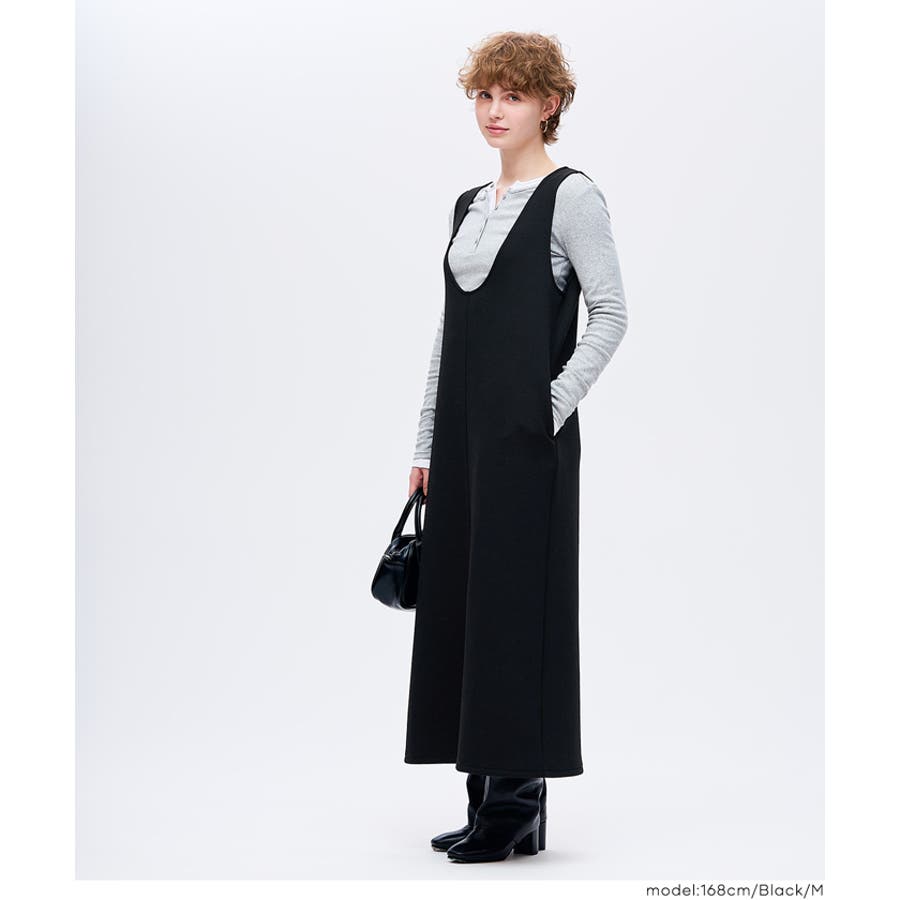 スウェットのやわらかさと、きれい見えする上品なシルエットを両立したジャンパースカート。