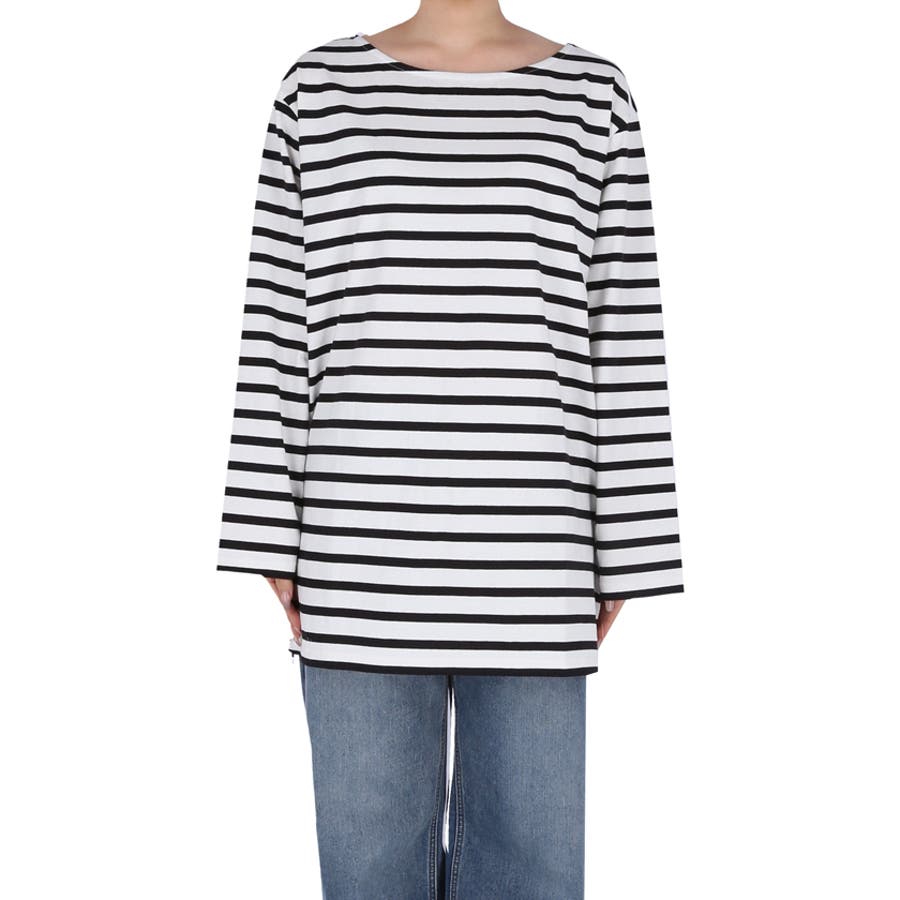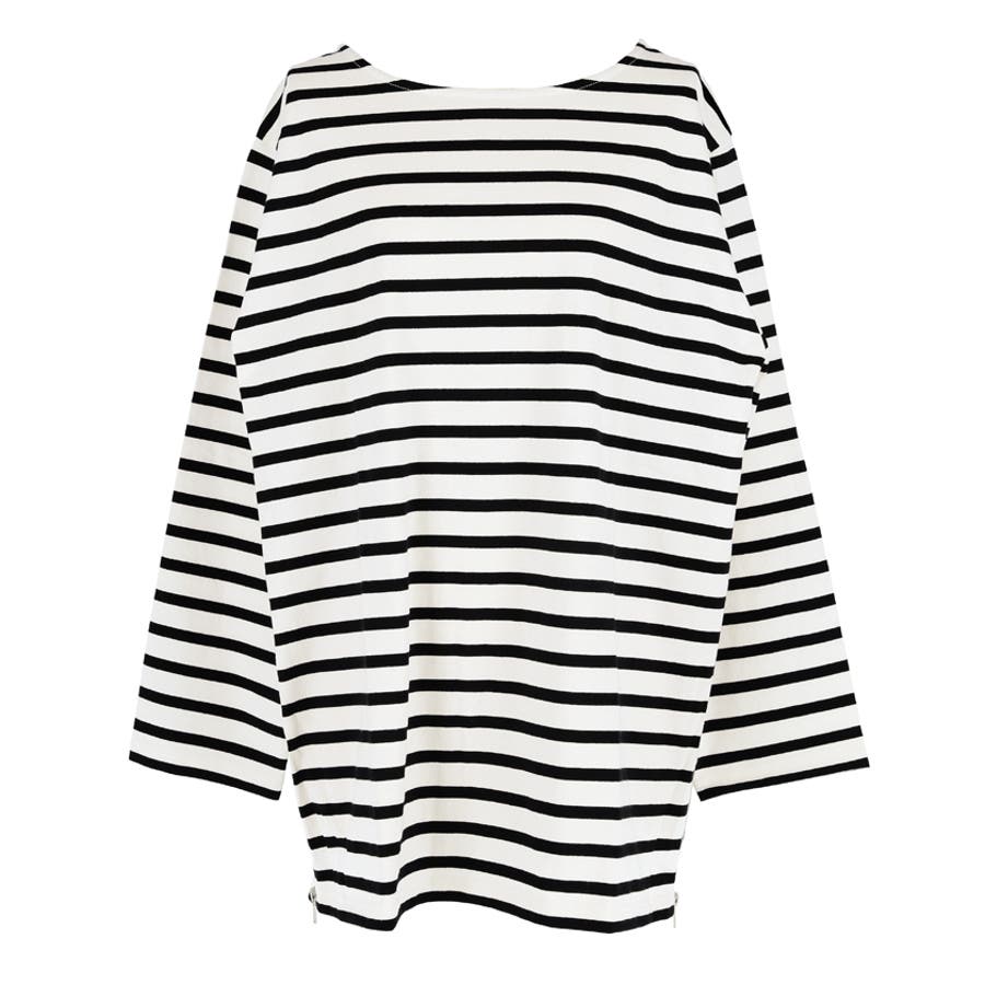 サイドジップ長袖ボーダープルオーバー