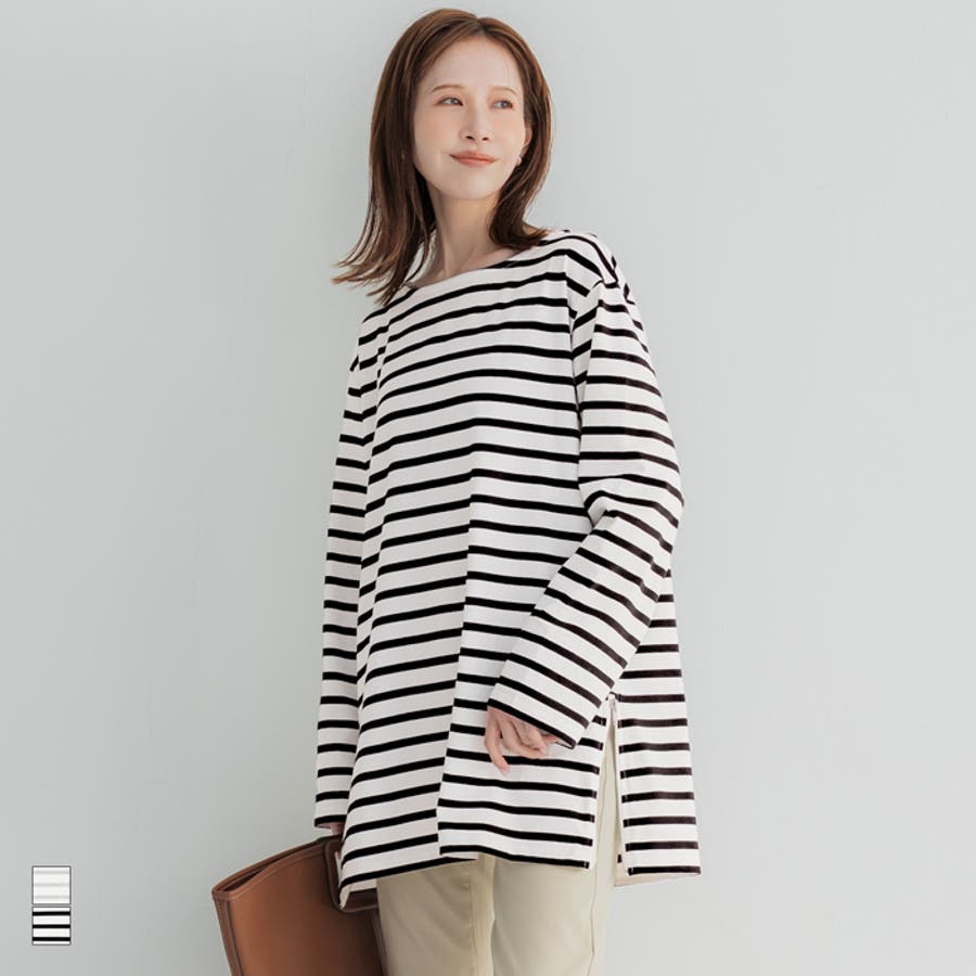 トップス サイドジップ ロンT ボーダー 体型カバー 長袖 カジュアル シンプル 無地 26ss コカ COCA coca COCA coca おしゃれ 可愛い きれいめ 秋 秋服 冬 冬服 おとな 大人 女性ファッション 韓国 カジュアル プチプラ 10代 20代 30代 40代 50代 オフィス ホーム シンプル オフィスカジュアル