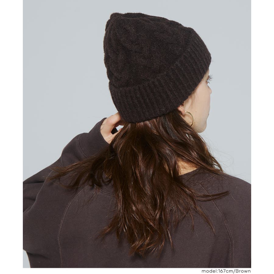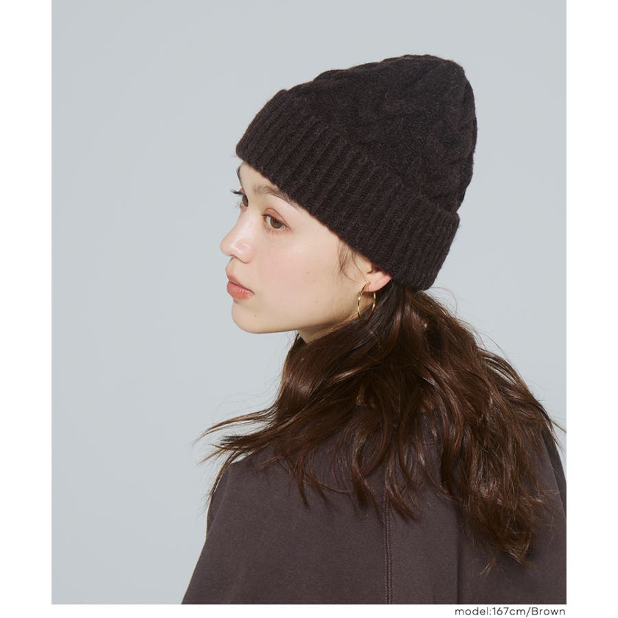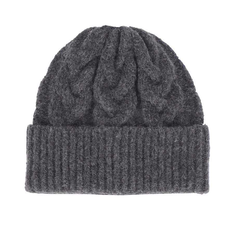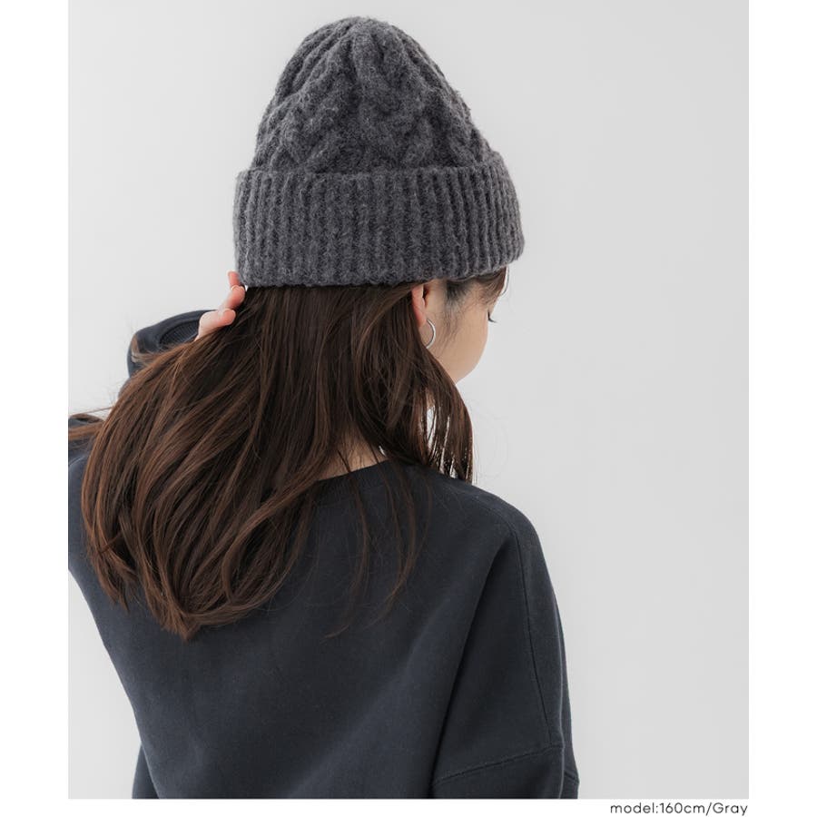 ウール混ケーブルニット帽子 レディース