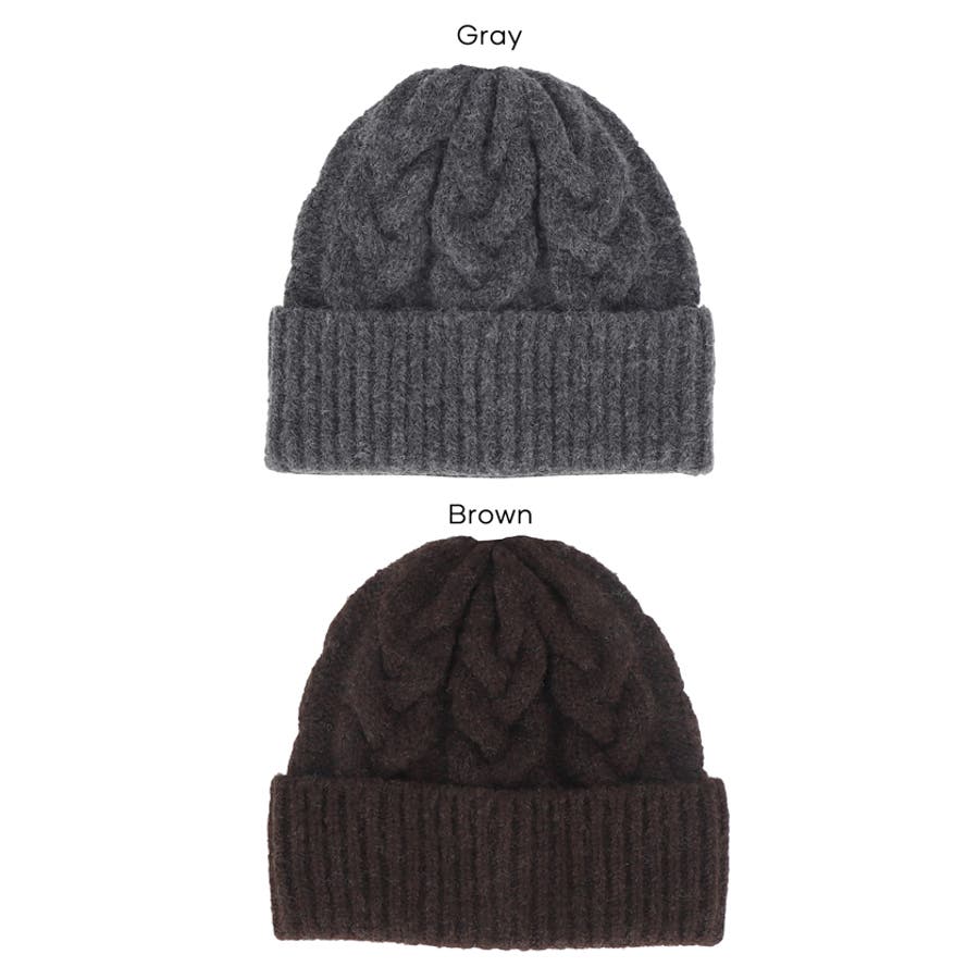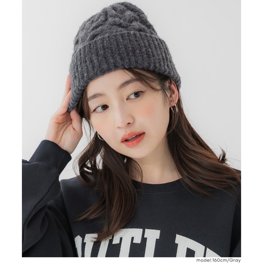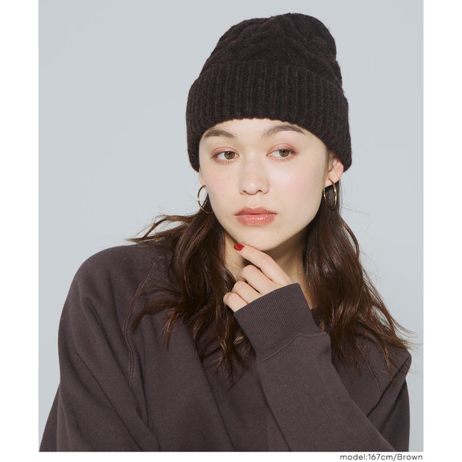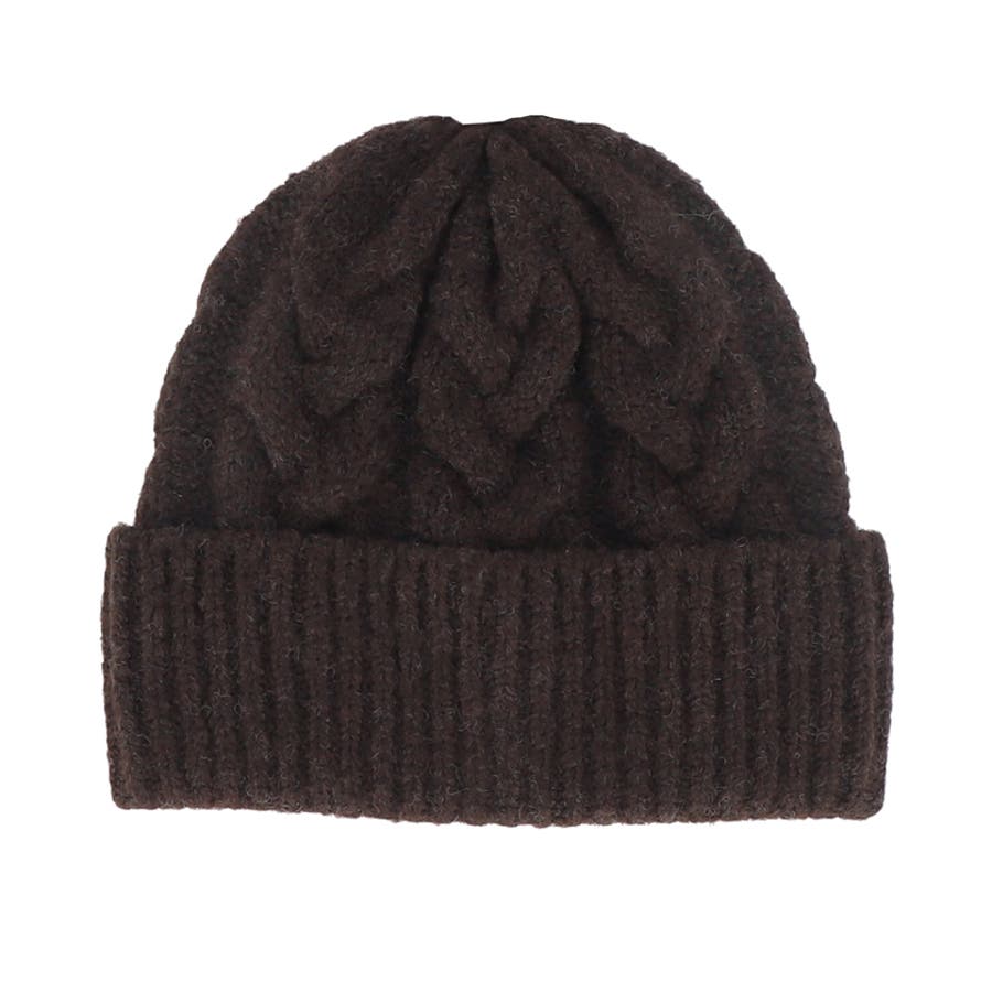 ウール混ケーブルニット帽子 レディース