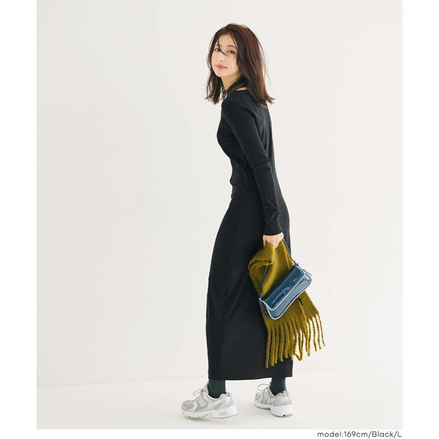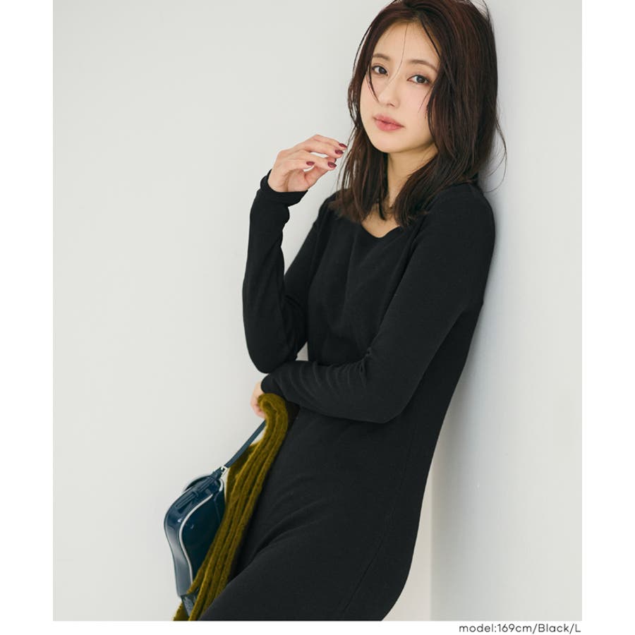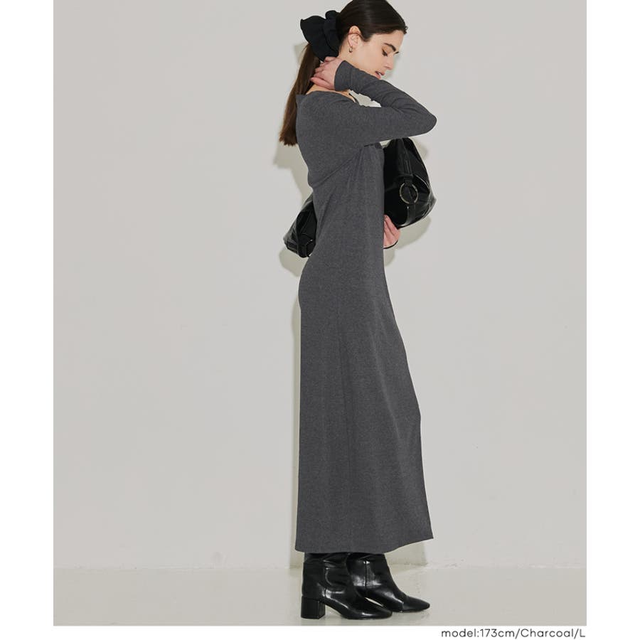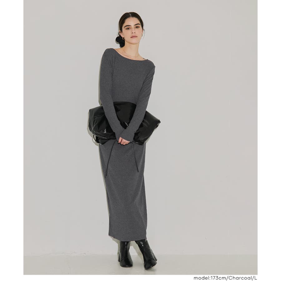 アイテム説明:前後2wayで着られる細リブのIラインワンピース。