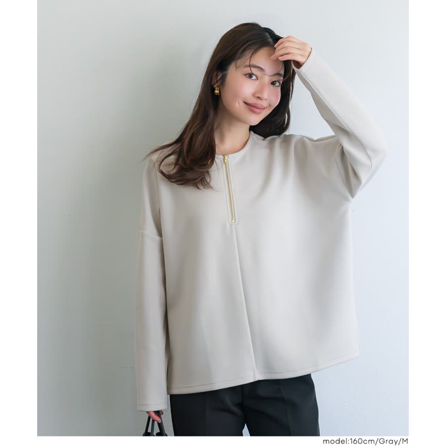 トップス プルオーバー ダンボール イージーケア ジップアップ ストレッチ ハリ感 無地 きれいめ カジュアル シンプル 通勤 オフィスカジュアル 26ss コカ COCA coca おしゃれ 可愛い きれいめ 秋 秋服 冬 冬服 おとな 大人 女性ファッション 韓国 カジュアル プチプラ 10代 20代 30代 40代 50代 オフィス ホーム シンプル オフィスカジュアル