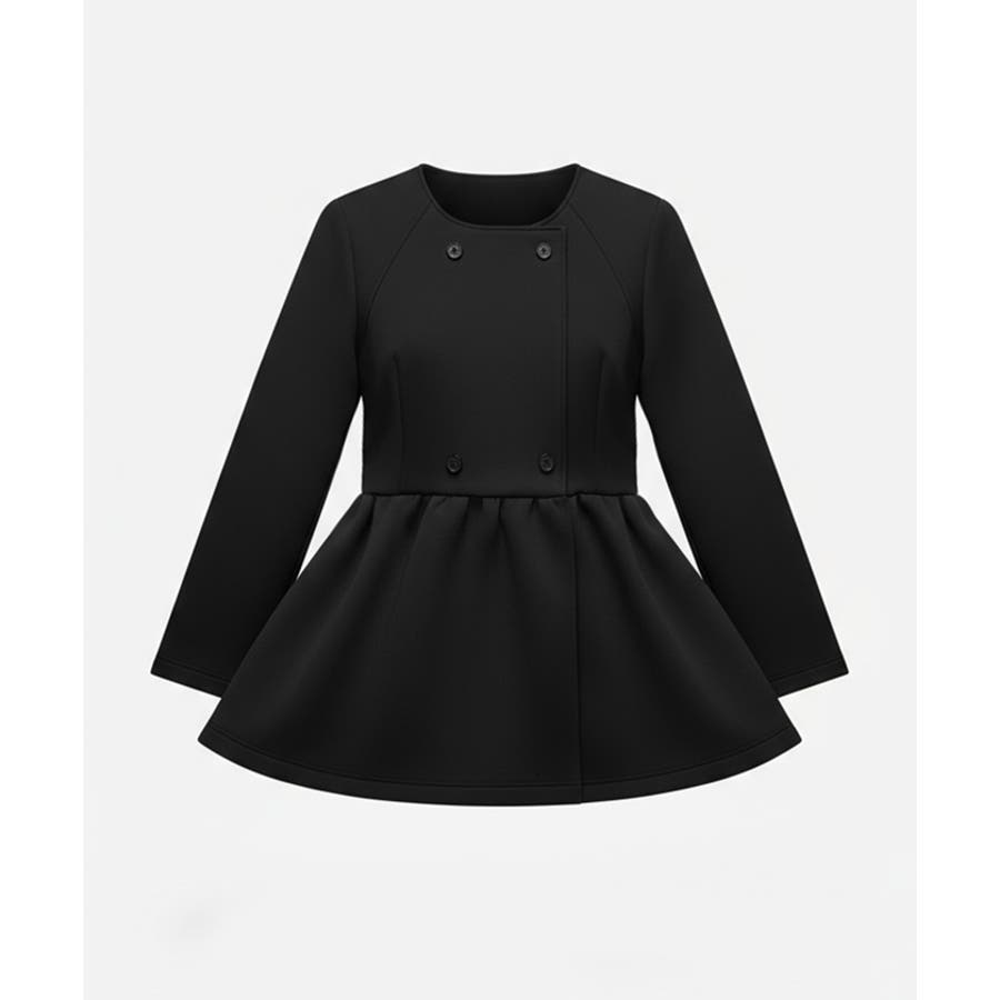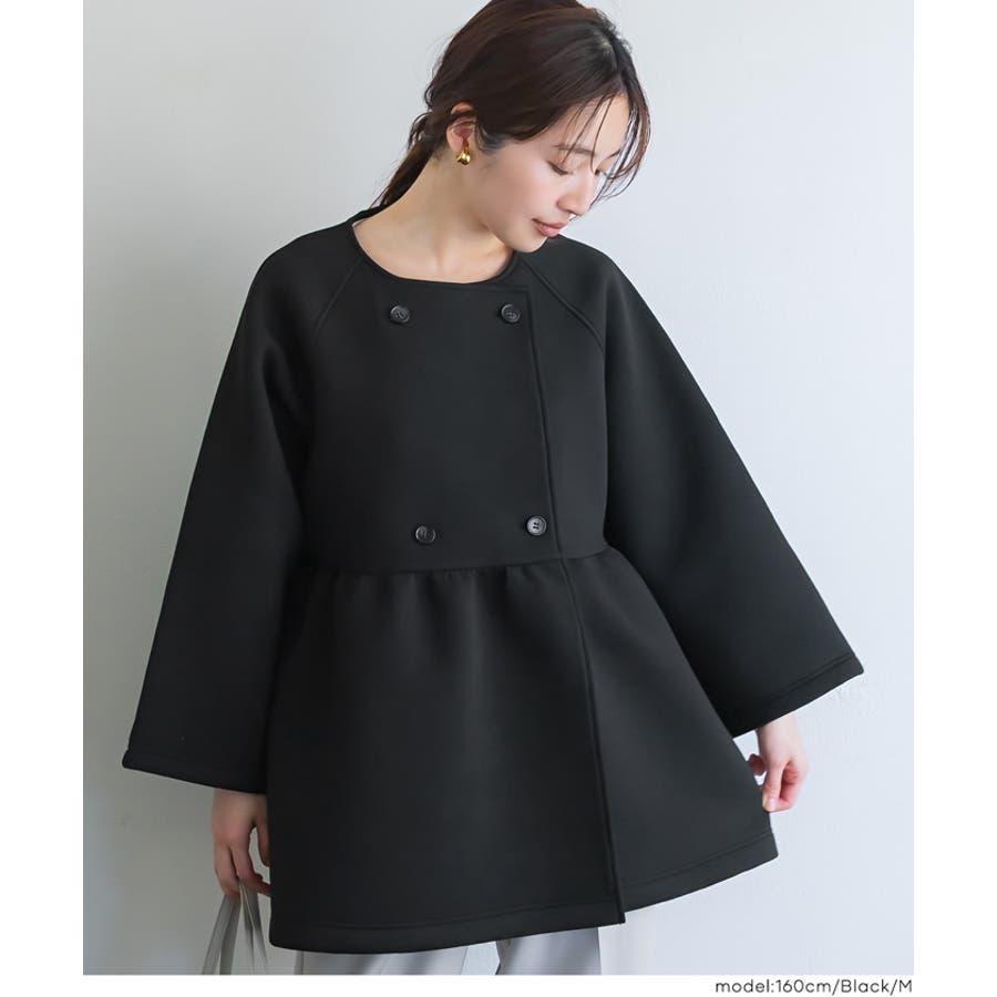 バウンススウェットフレアノーカラーダブルボタンコート