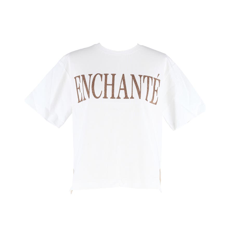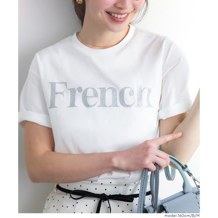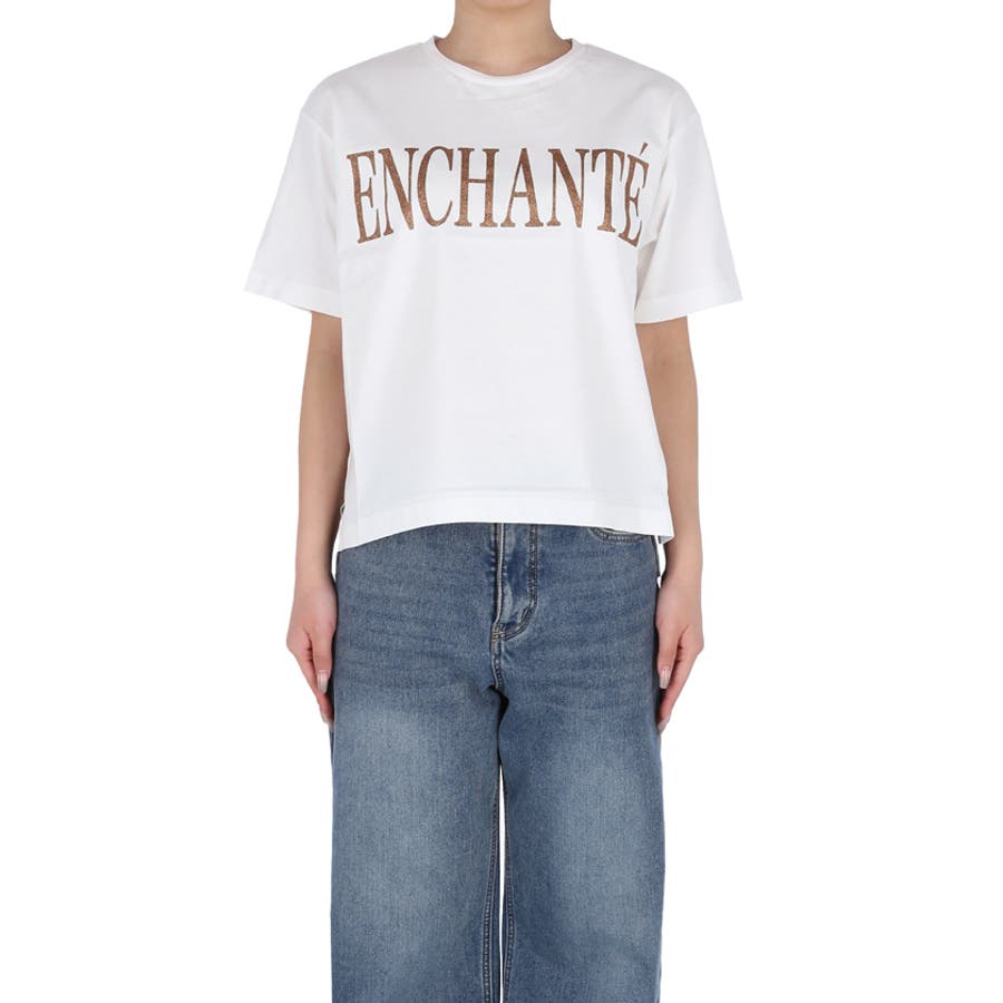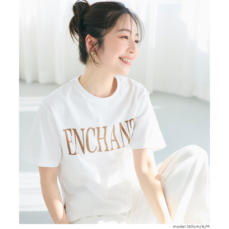 ジャケットやカーディガンのインナーとしても、ラメロゴがコーディネートのアクセントに。