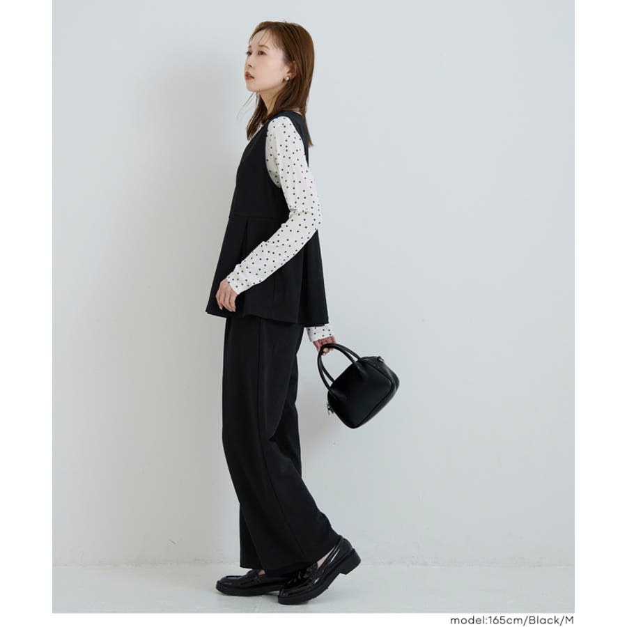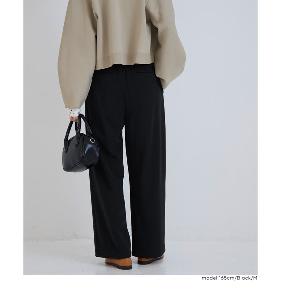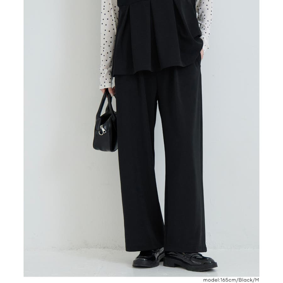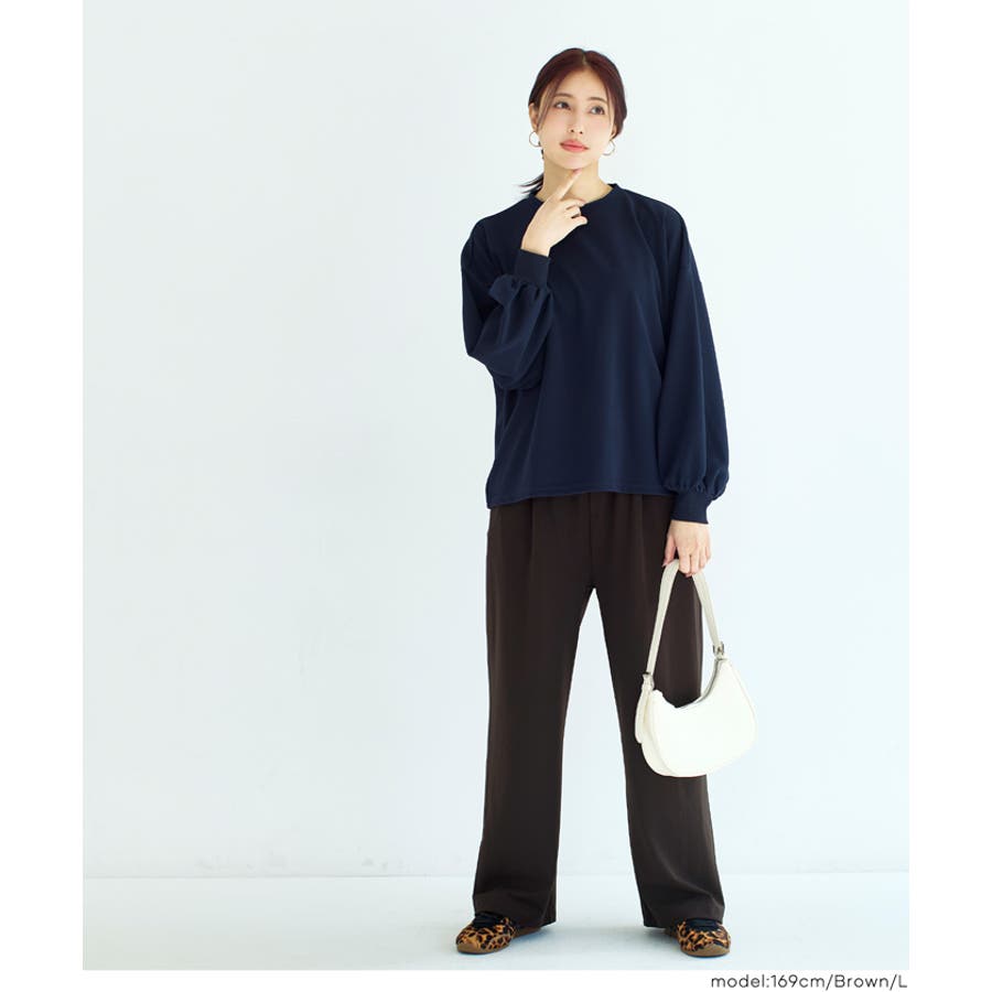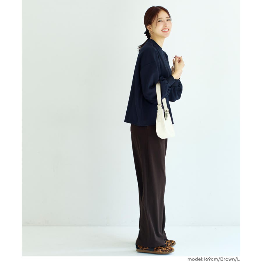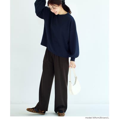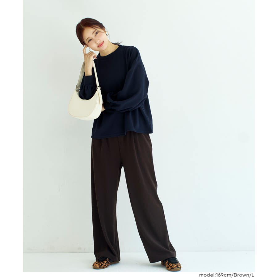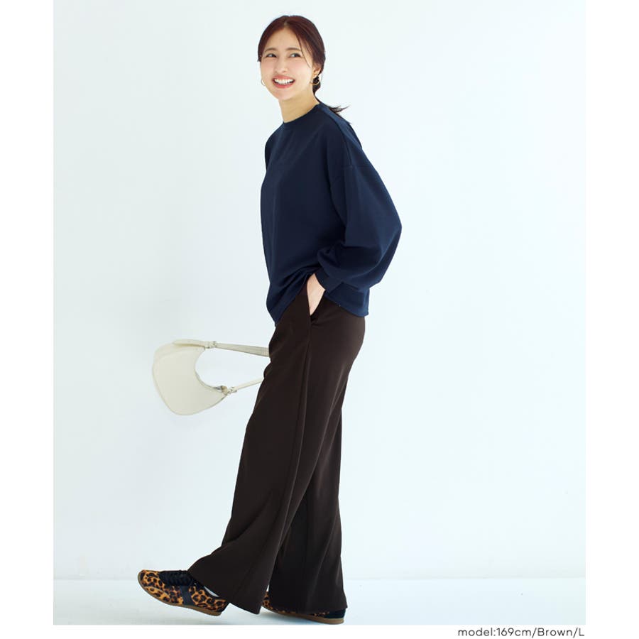 シンプルデザインでトップスを選ばず、着回し力の高いワイドパンツです。