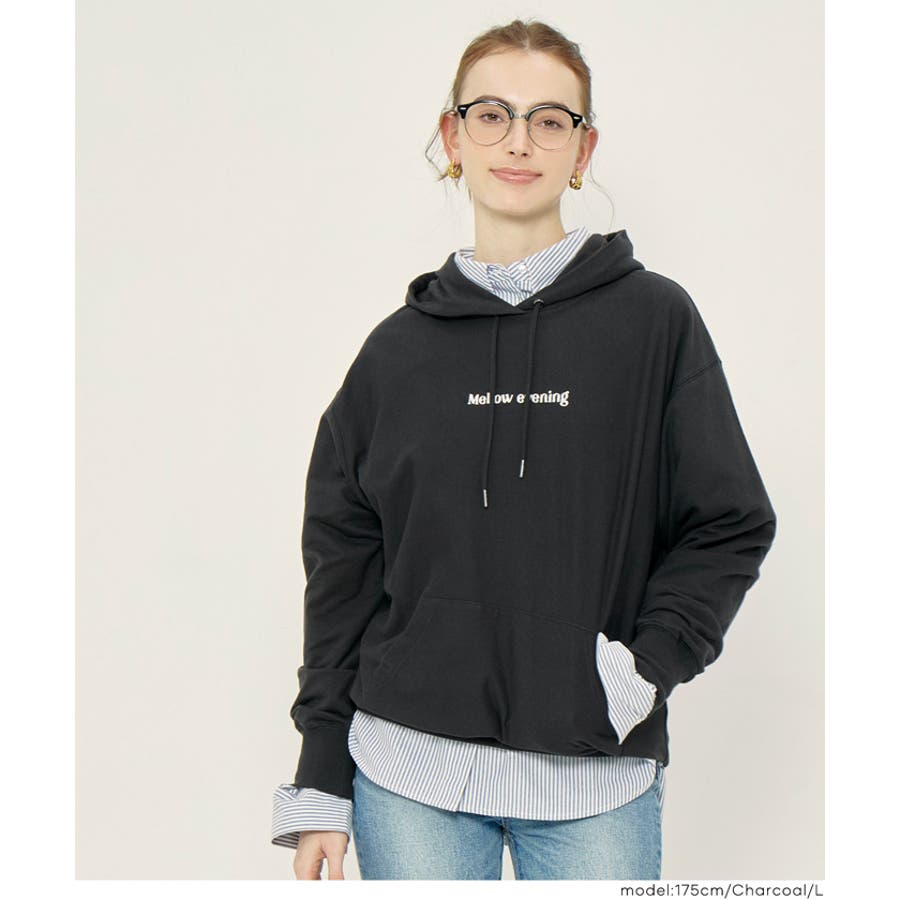 フロントに施した刺繍ロゴがさりげないアクセントになる、ミニ裏毛素材のプルパーカー。