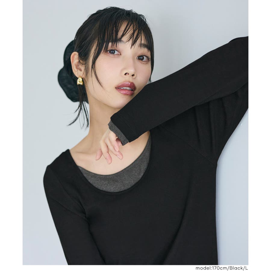 1枚で重ね着風のニュアンスが楽しめる、こなれ感のあるデザインです。