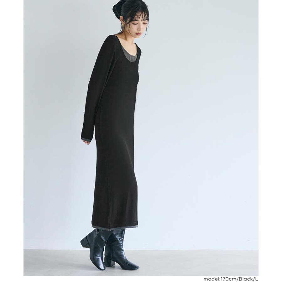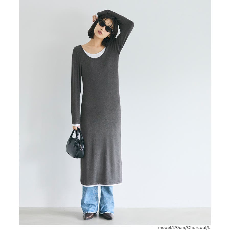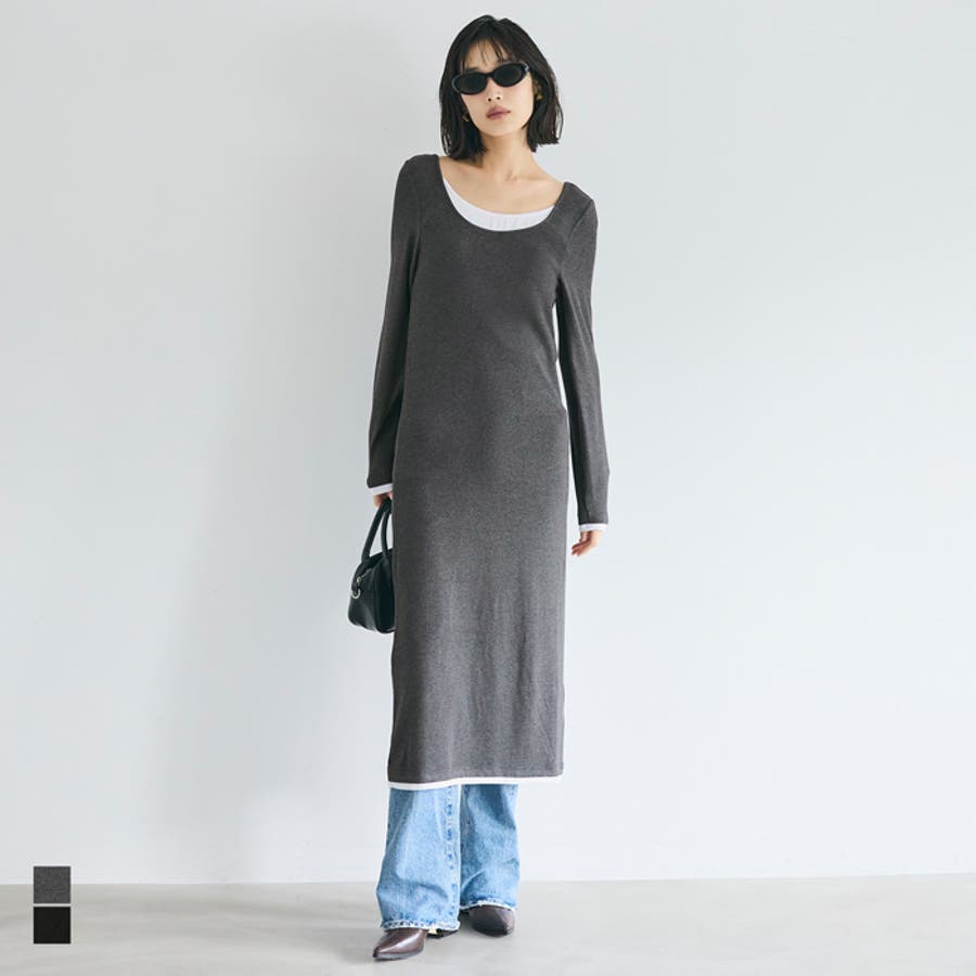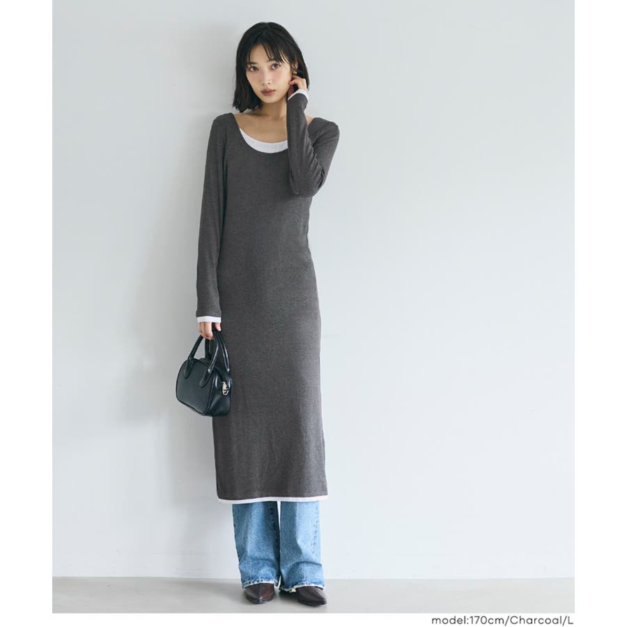 おしゃれ 可愛い きれいめ 秋 秋服 冬 冬服 おとな 大人 女性ファッション 韓国 カジュアル プチプラ 10代 20代 30代 40代 50代 オフィス ホーム シンプル オフィスカジュアル COCA coca コカ 春 ワンピース レイヤード とろみ リブ 重ね着風 ロングワンピース ロング丈 長袖 無地 体型カバー ヘルシー きれいめ 大人