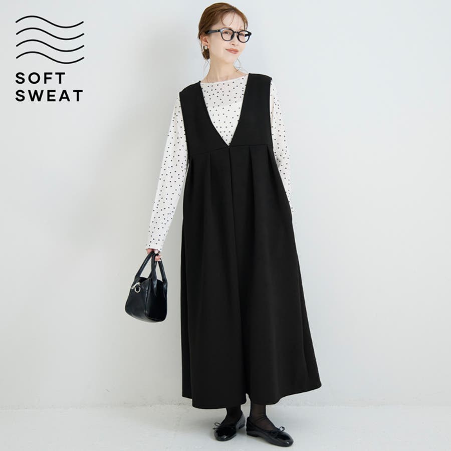 ソフトスウェットタックワンピース
