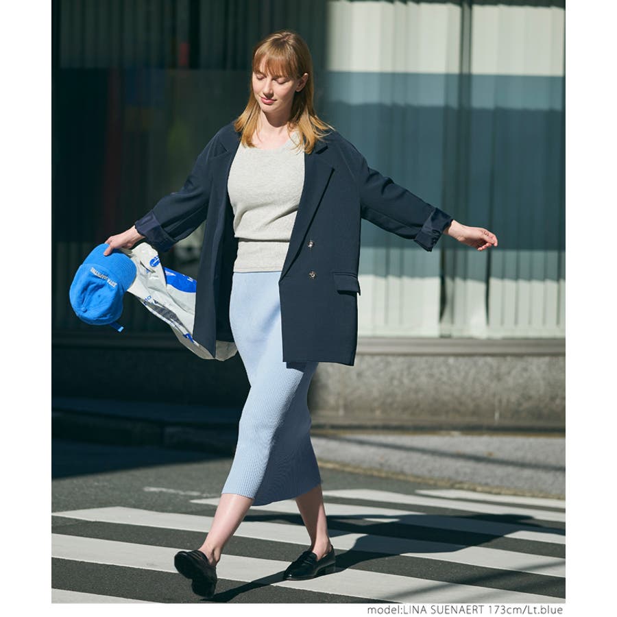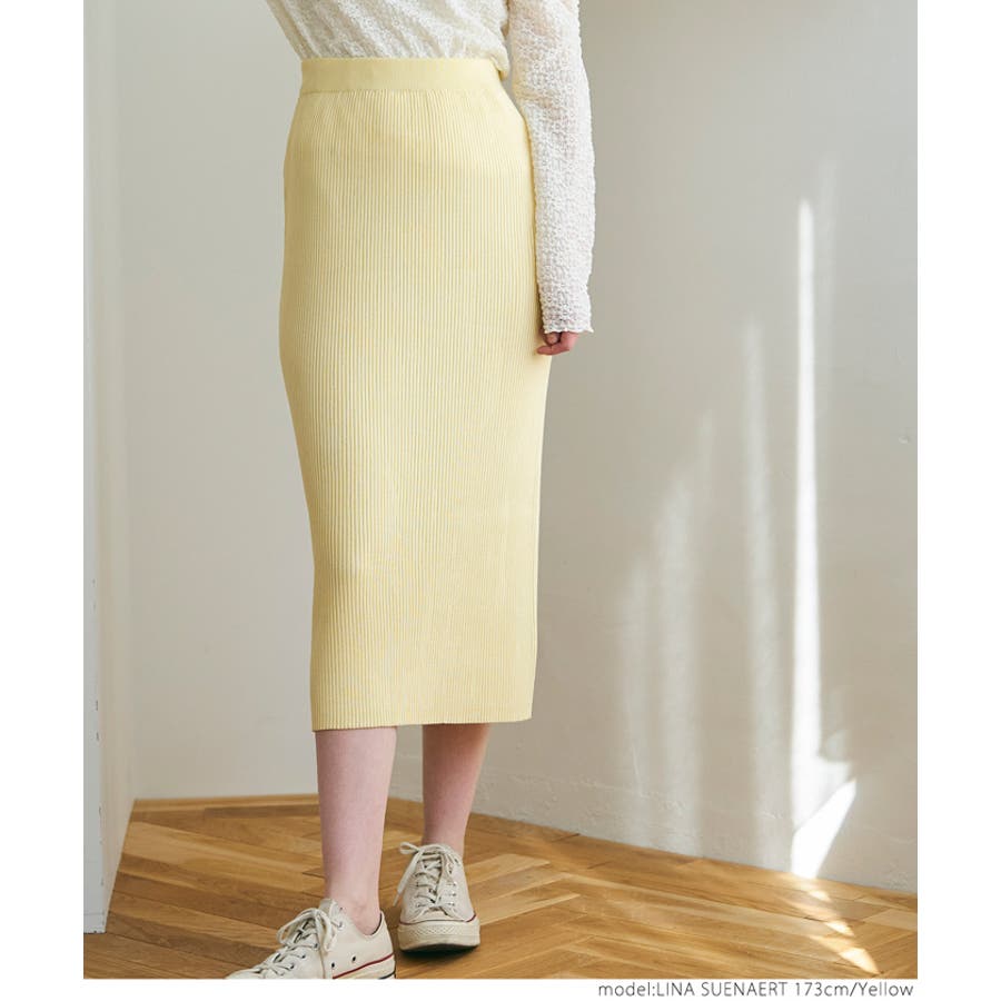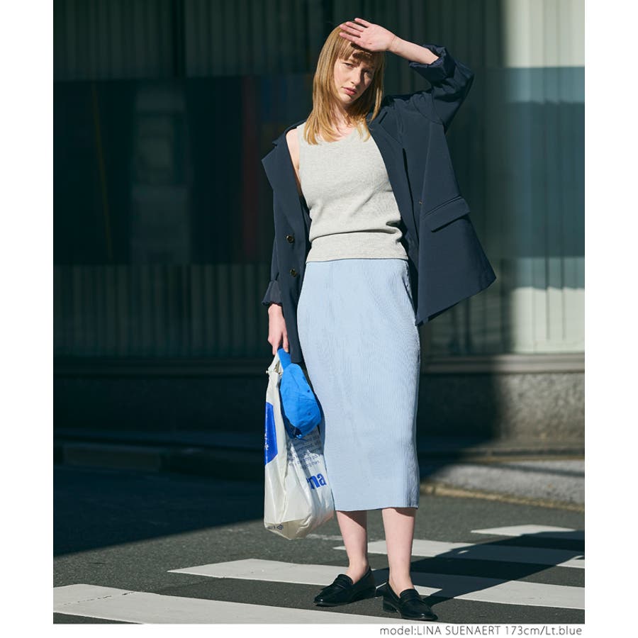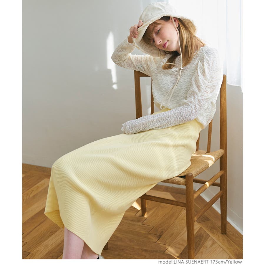 ニットスカート レディース シャリ感リブニット ストレート ミモレ丈 ウエストゴム Iライン ミディアム丈 ボトムス タイトスカート リブスカート サマーニット リブ ストレッチ ミディ丈 伸縮性 タイト コカ COCA coca COCA coca