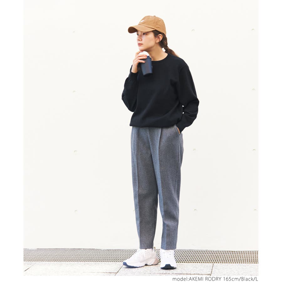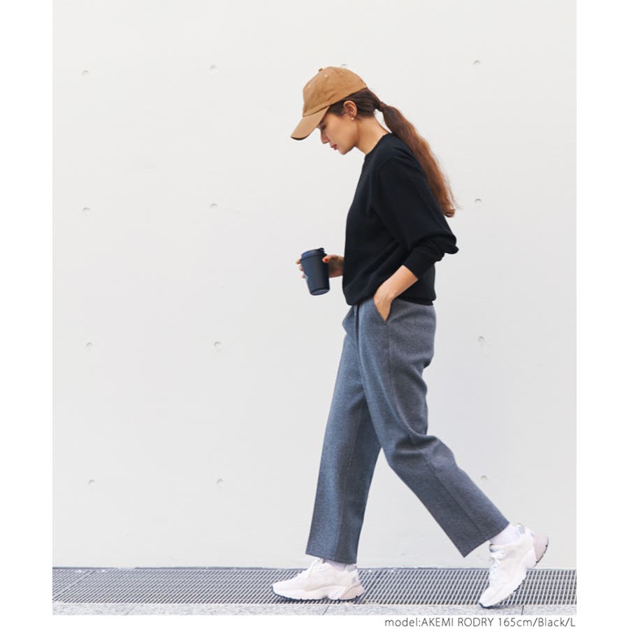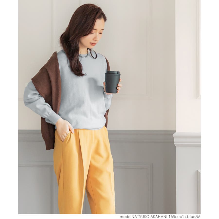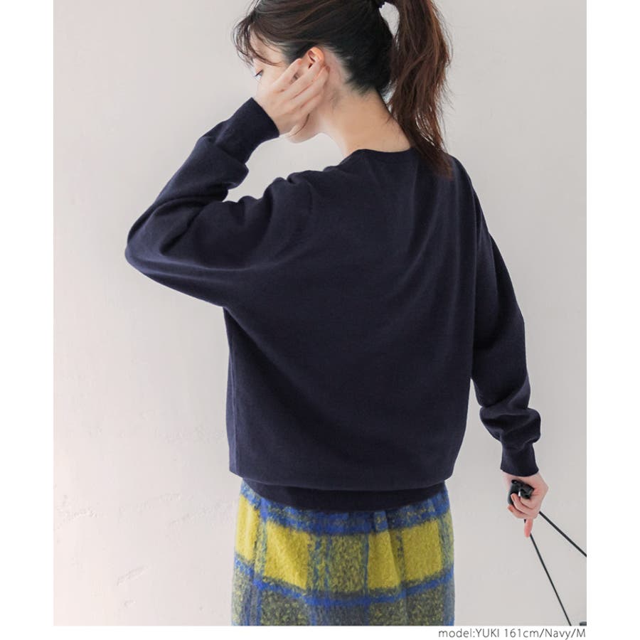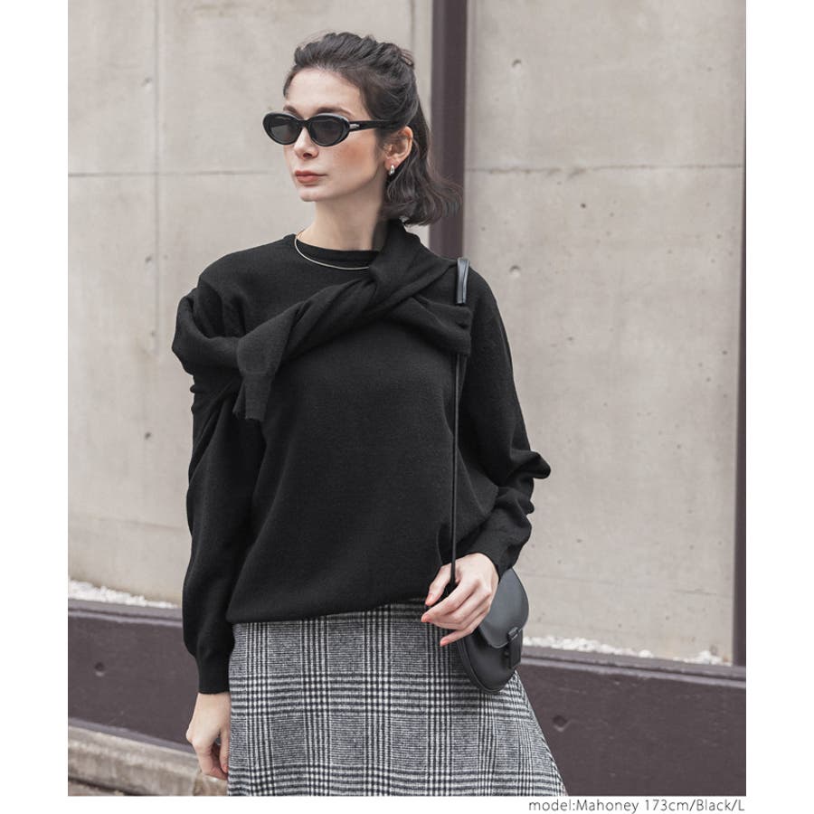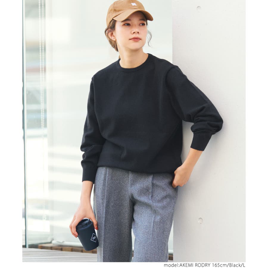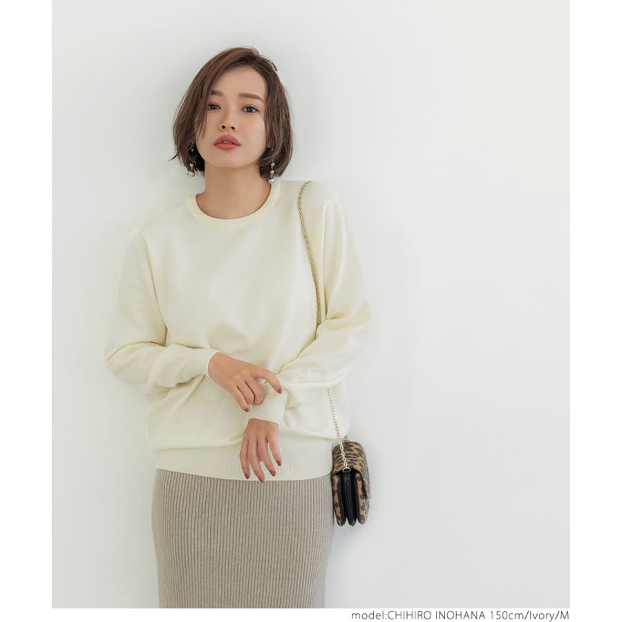 どんなコーデにも合わせやすいベーシックなデザインのニット。