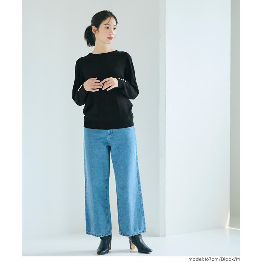 ゴールドボタンが華やぎをプラス。袖金ボタンニットトップス