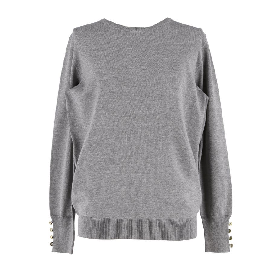 アイテム説明:ゴールドボタンが華やかさを添える上品なニットトップス。