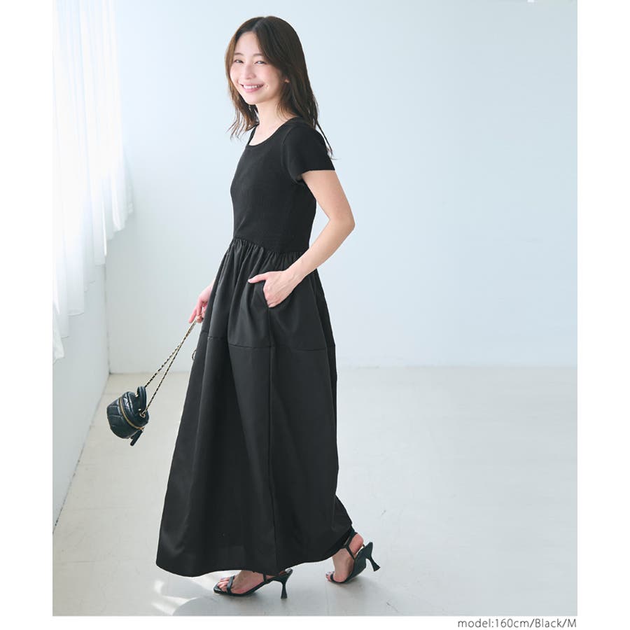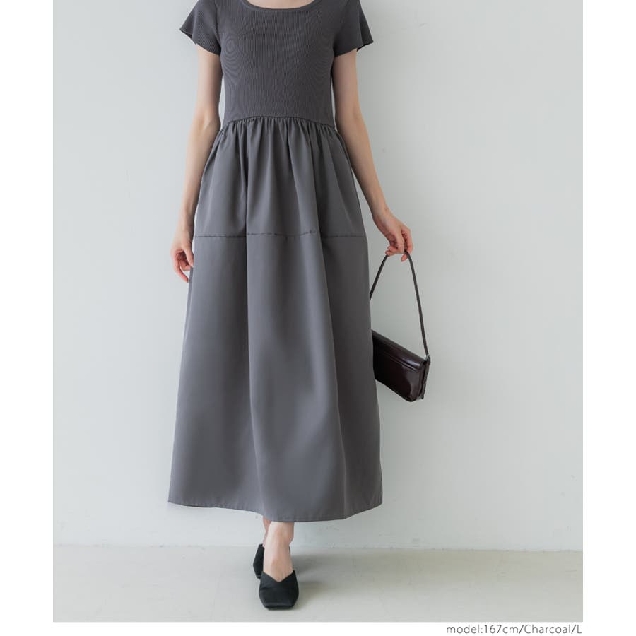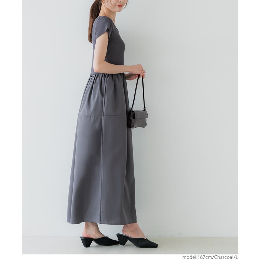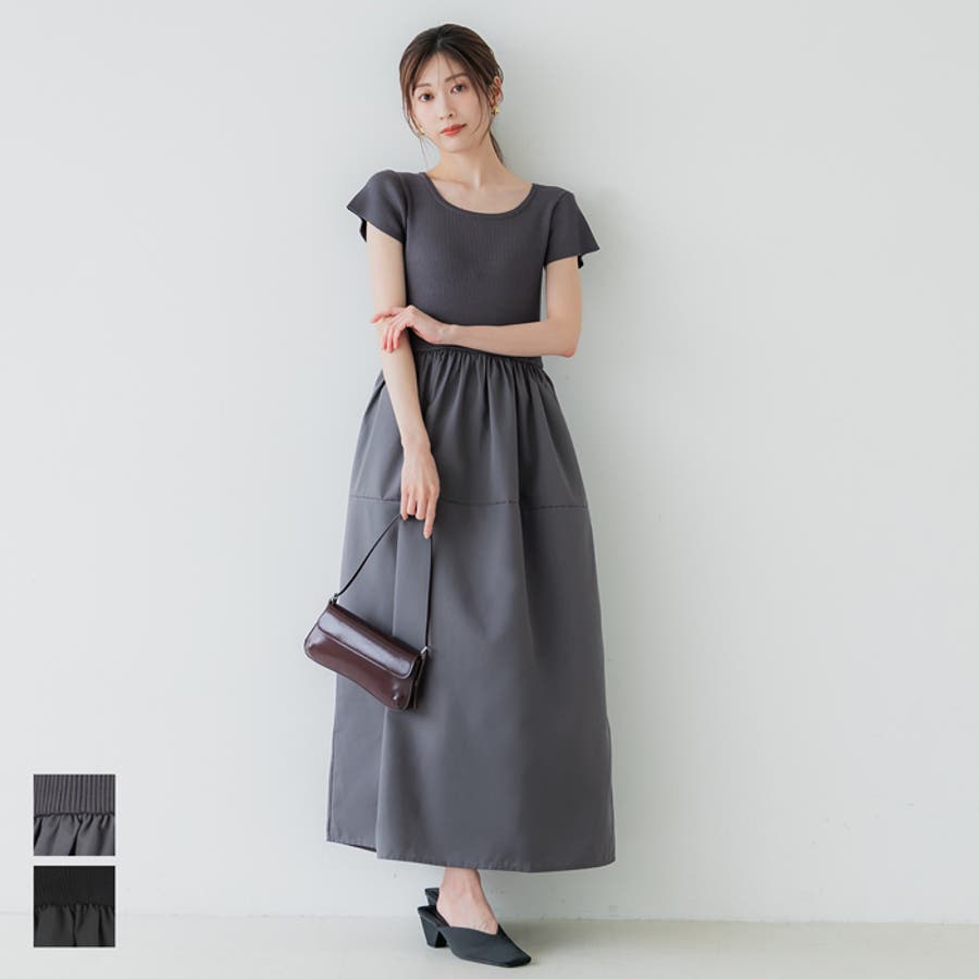 ワンピース 切り替えワンピ ロングワンピ ニット 異素材 半袖 ギャザー ポケット ゴム ロング 無地 シンプル カジュアル 25aw コカ COCA coca COCA coca おしゃれ 可愛い きれいめ おとな 大人 女性ファッション 体系カバー 韓国 夏服 夏 秋 秋服 カジュアル プチプラ 10代 20代 30代 40代 50代 オフィス シンプル