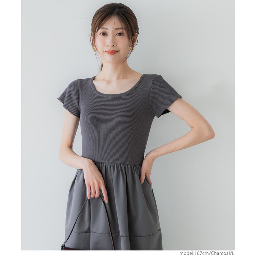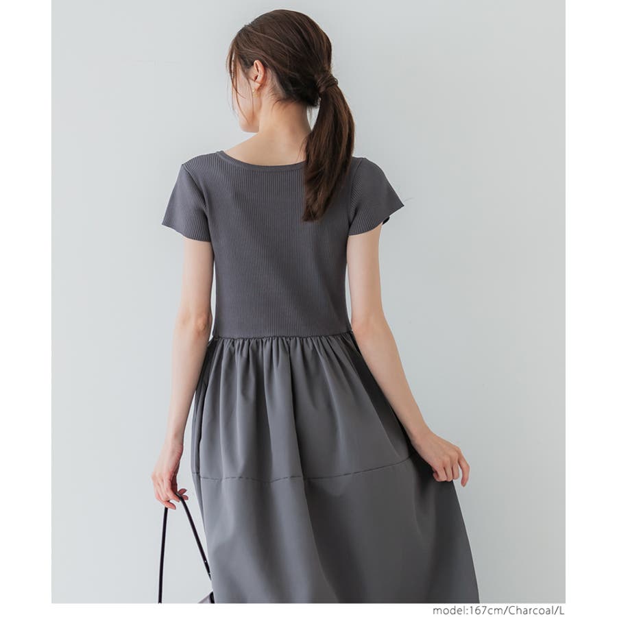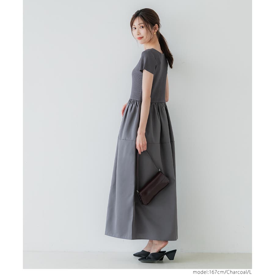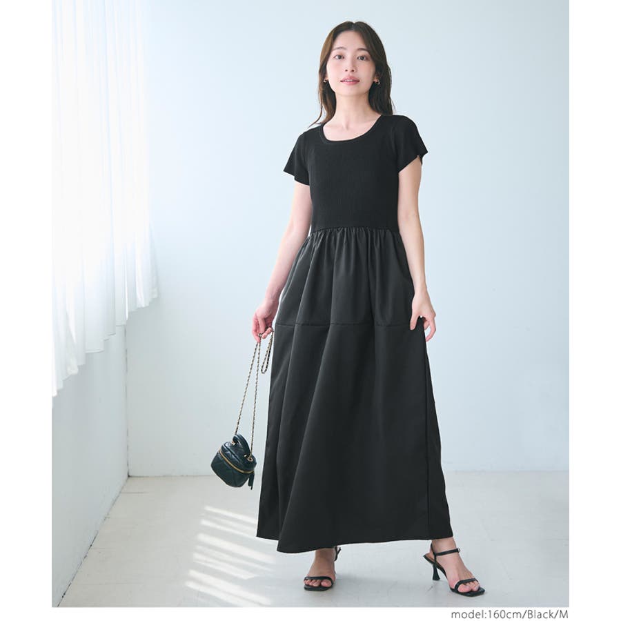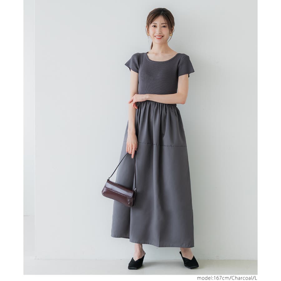 ワンピース 切り替えワンピ ロングワンピ ニット 異素材 半袖 ギャザー ポケット ゴム ロング 無地 シンプル カジュアル 25aw コカ COCA coca COCA coca おしゃれ 可愛い きれいめ おとな 大人 女性ファッション 体系カバー 韓国 夏服 夏 秋 秋服 カジュアル プチプラ 10代 20代 30代 40代 50代 オフィス シンプル