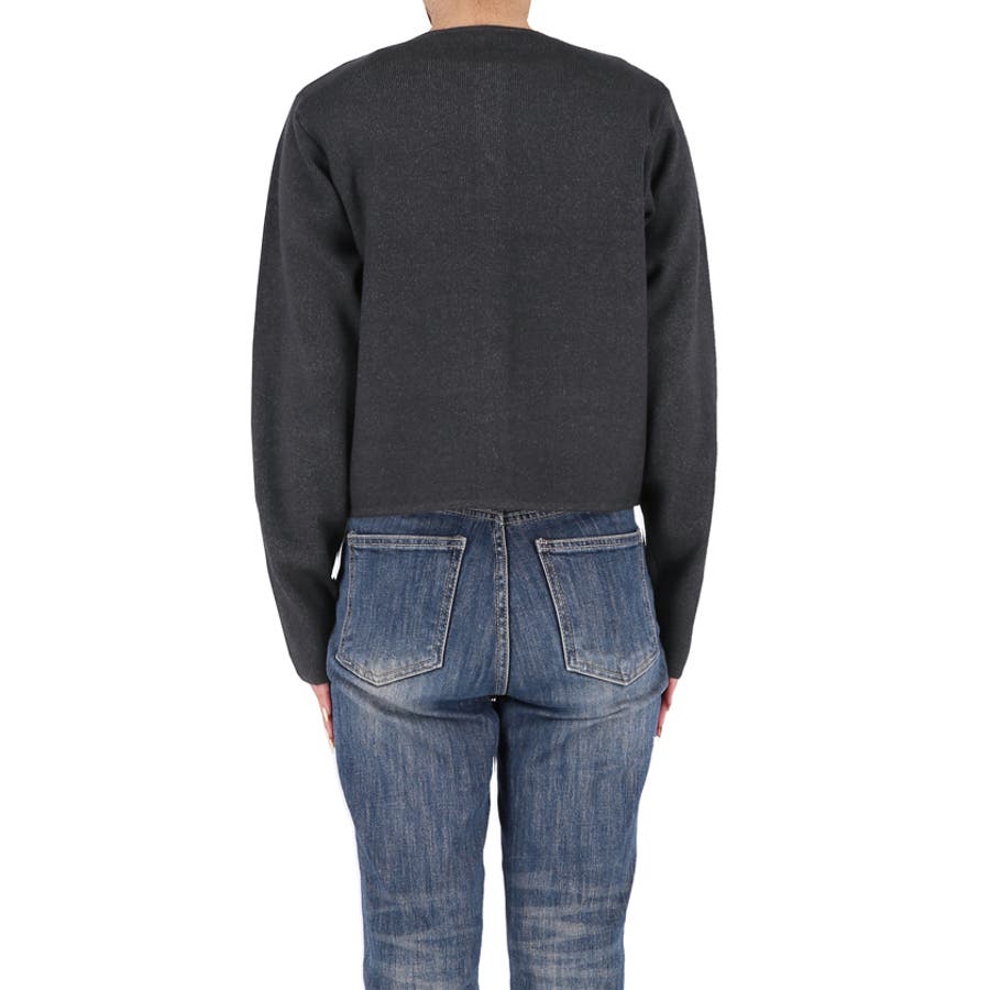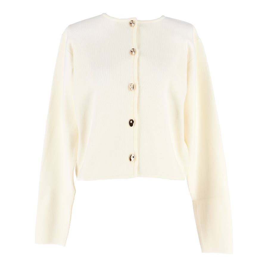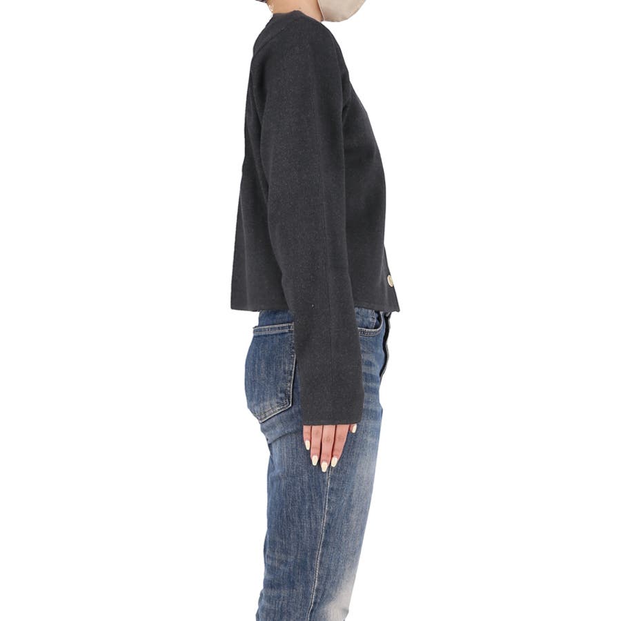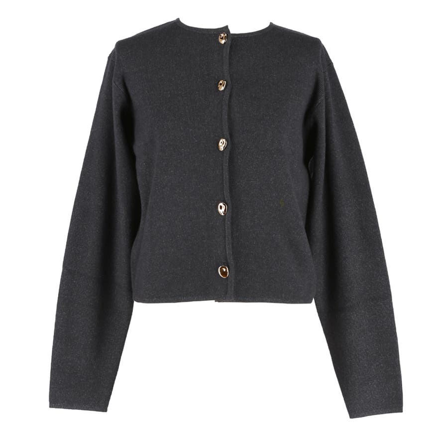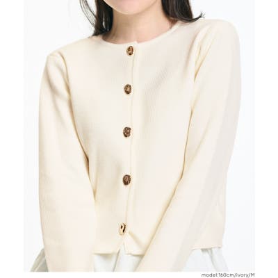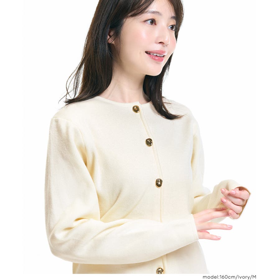 フロントの金ボタンが華やかさを添えるニットカーディガン。