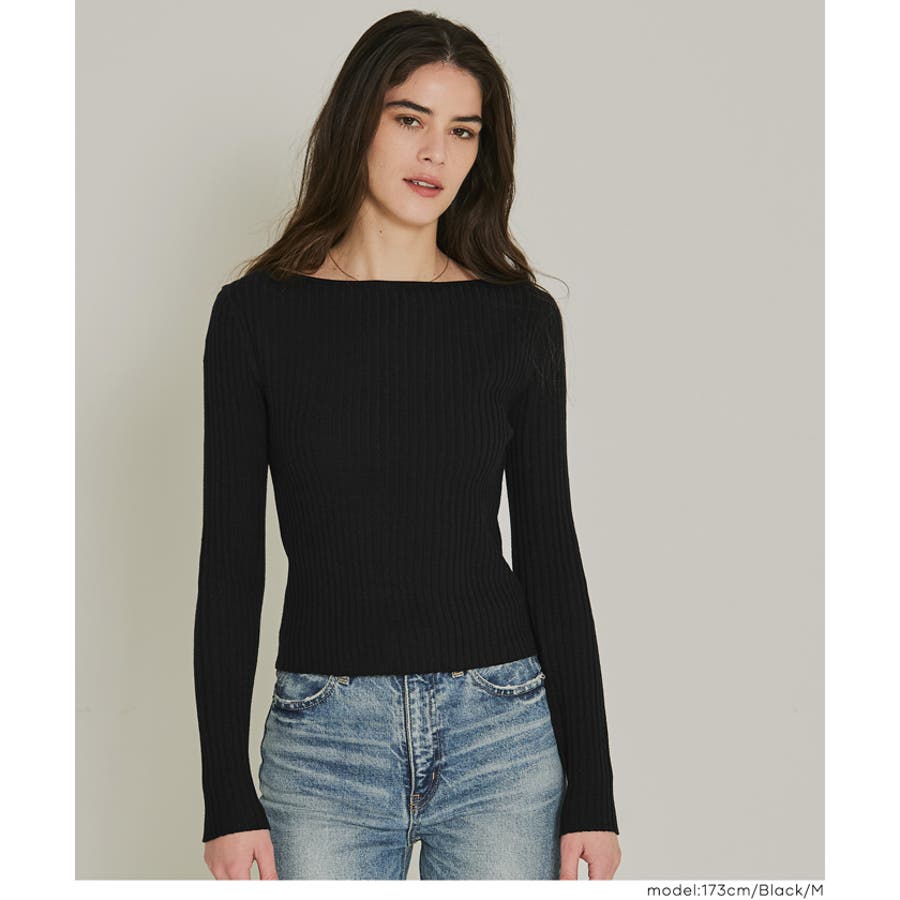 ボートネックリブニットトップス